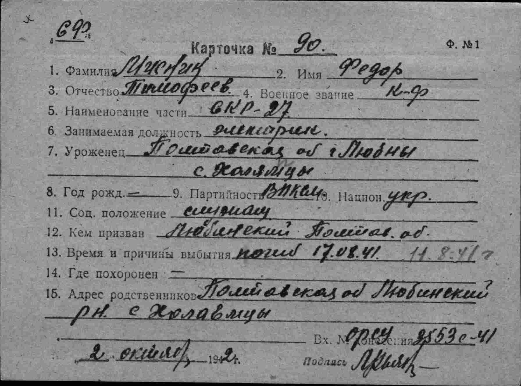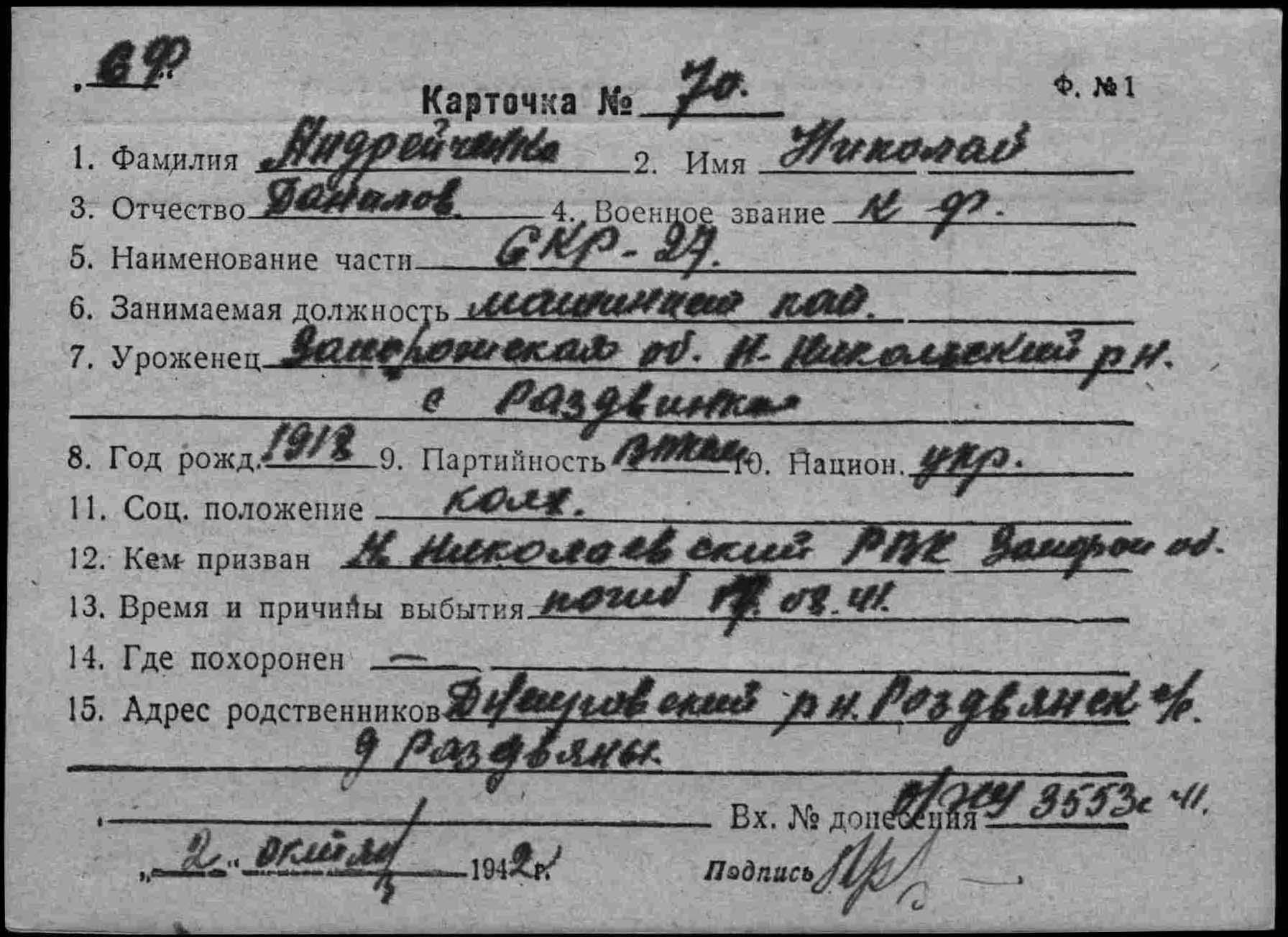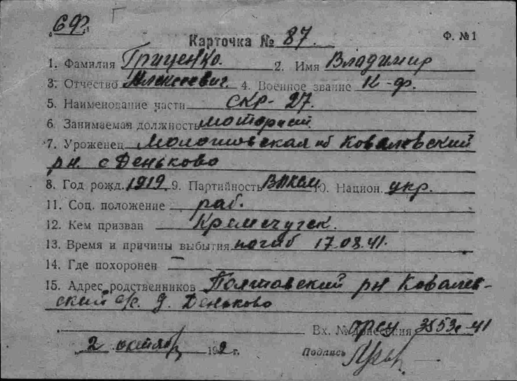 Дата и место призыва Кременчугский РВК, Украинская ССР, Полтавская обл., Кременчугский р-н