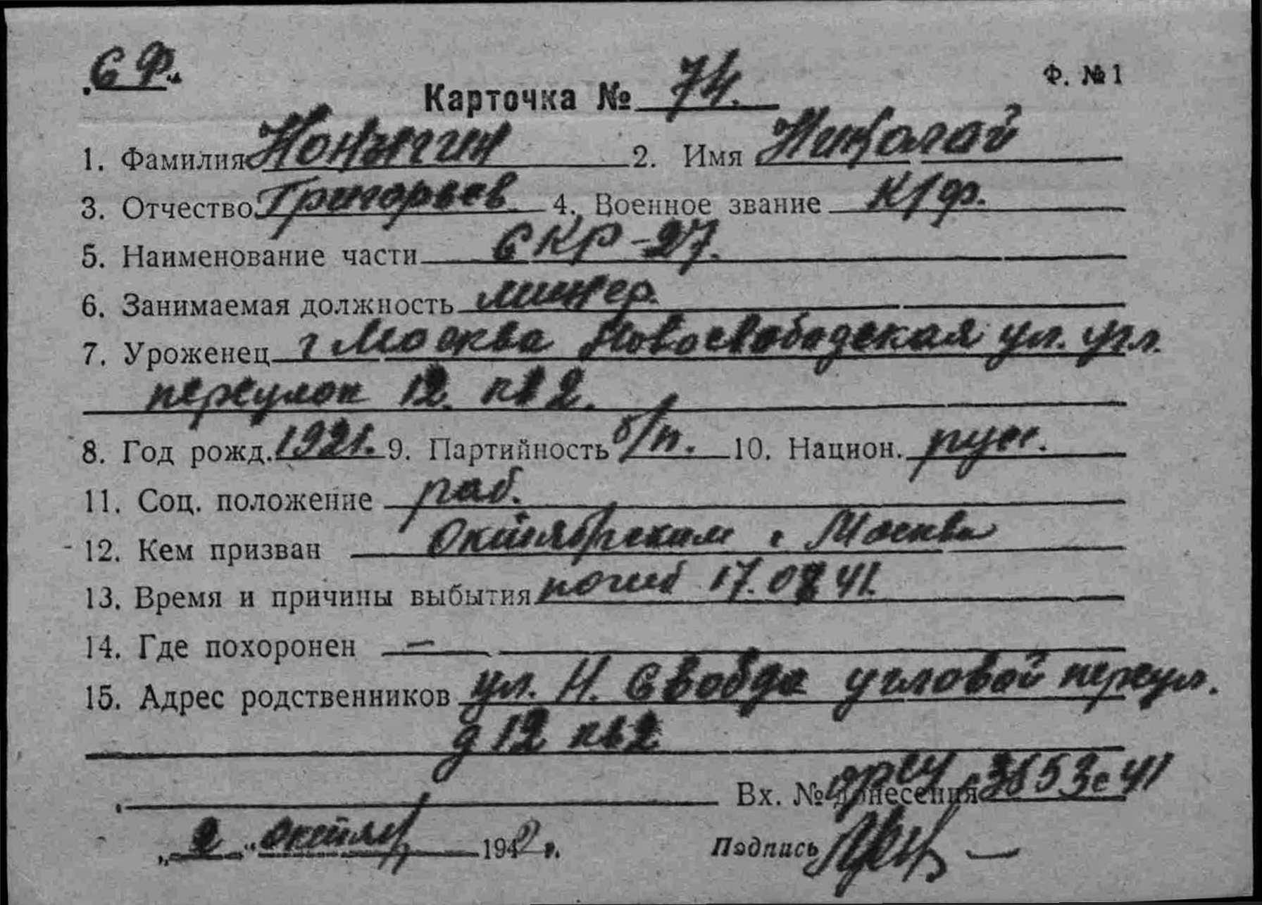 Дата и место призыва Первомайский РВК, Московская обл., г. Москва, Первомайский р-н
