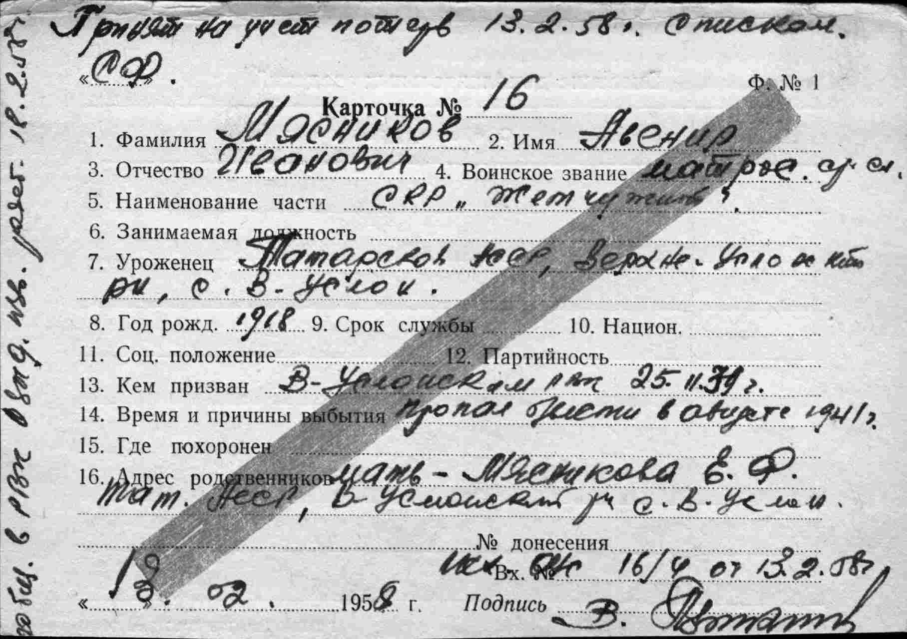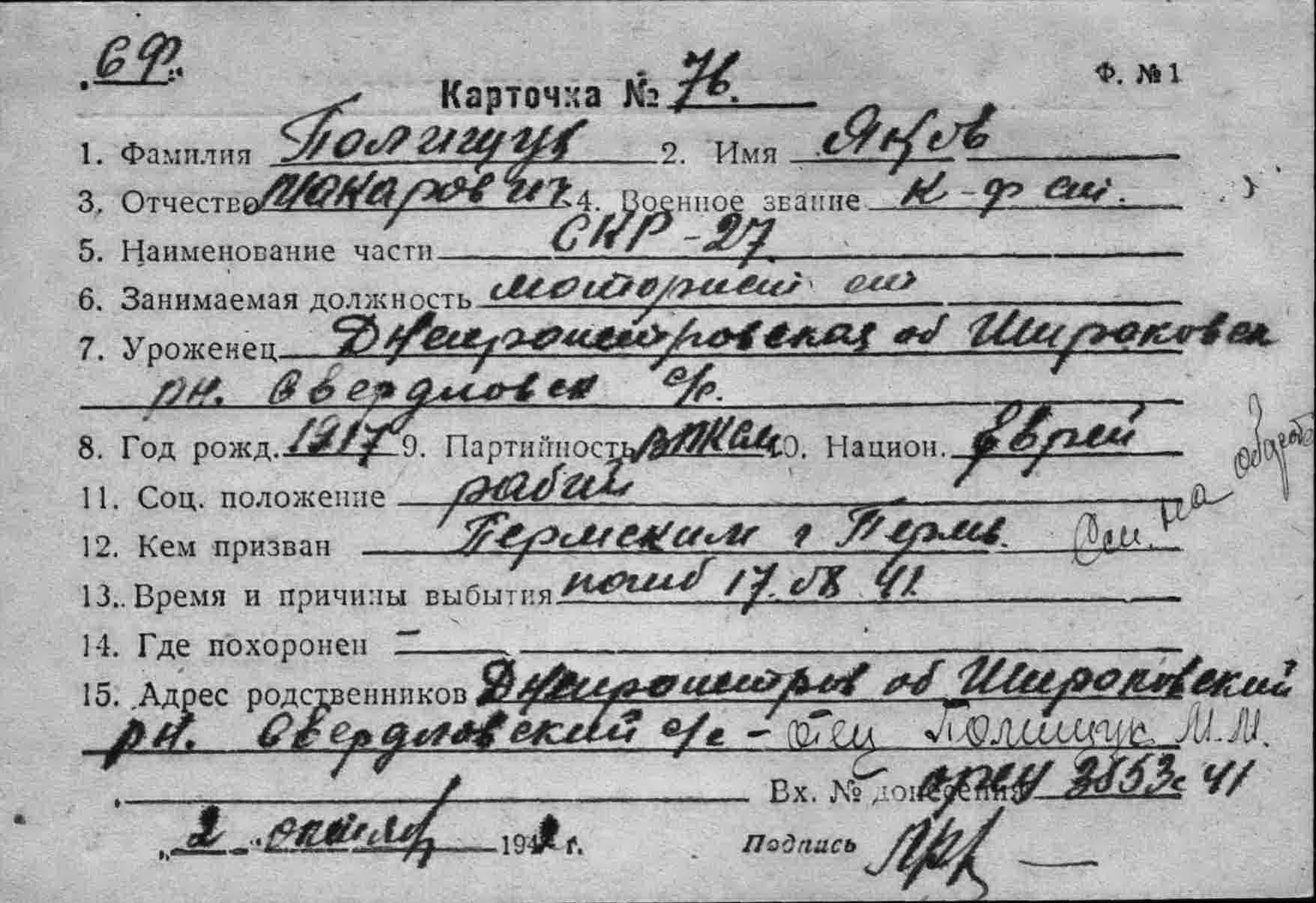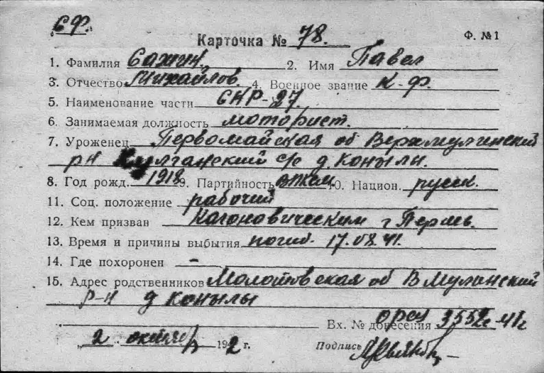 Дата и место призыва Молотовский (Пермский) РВК, Молотовская обл.