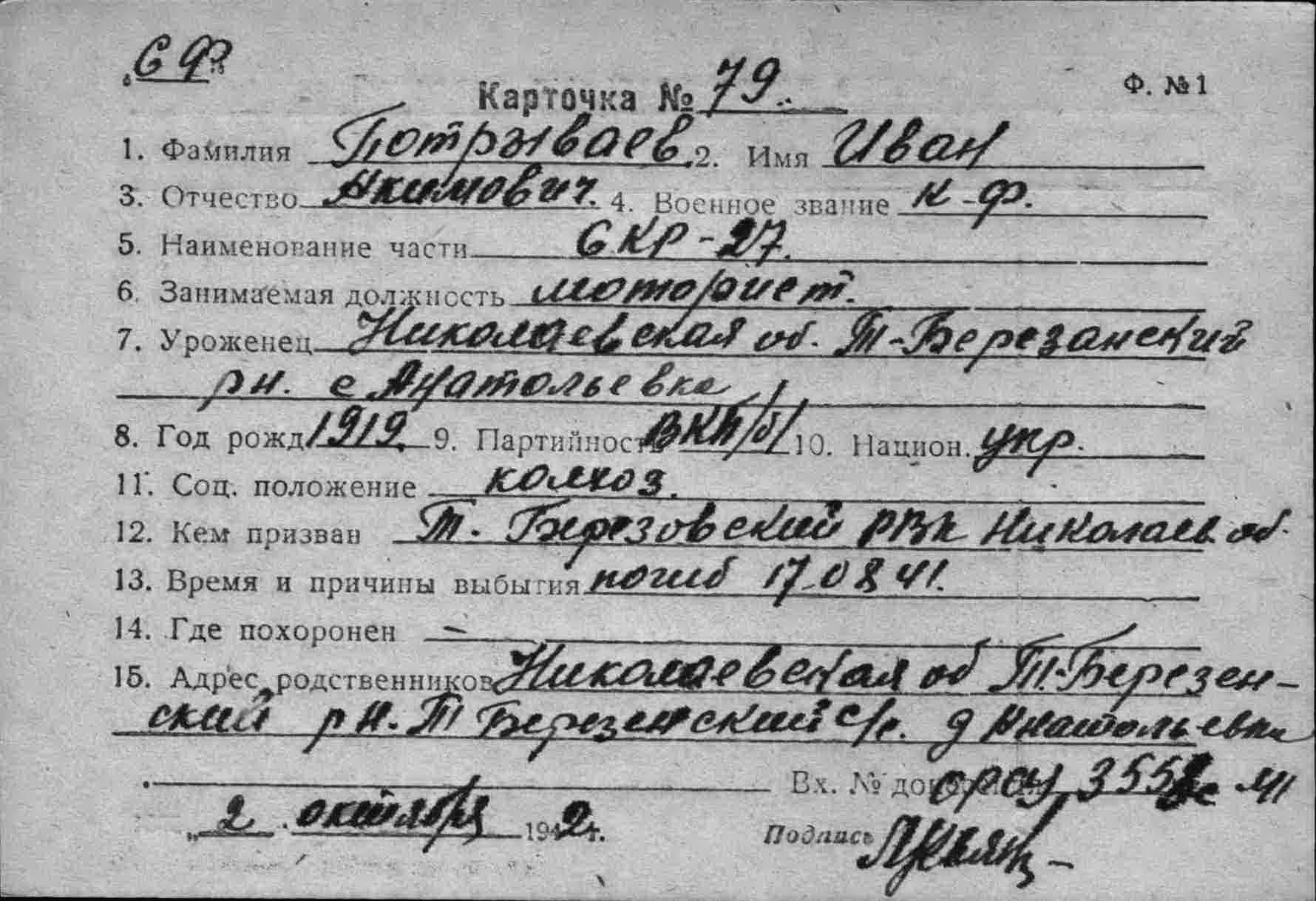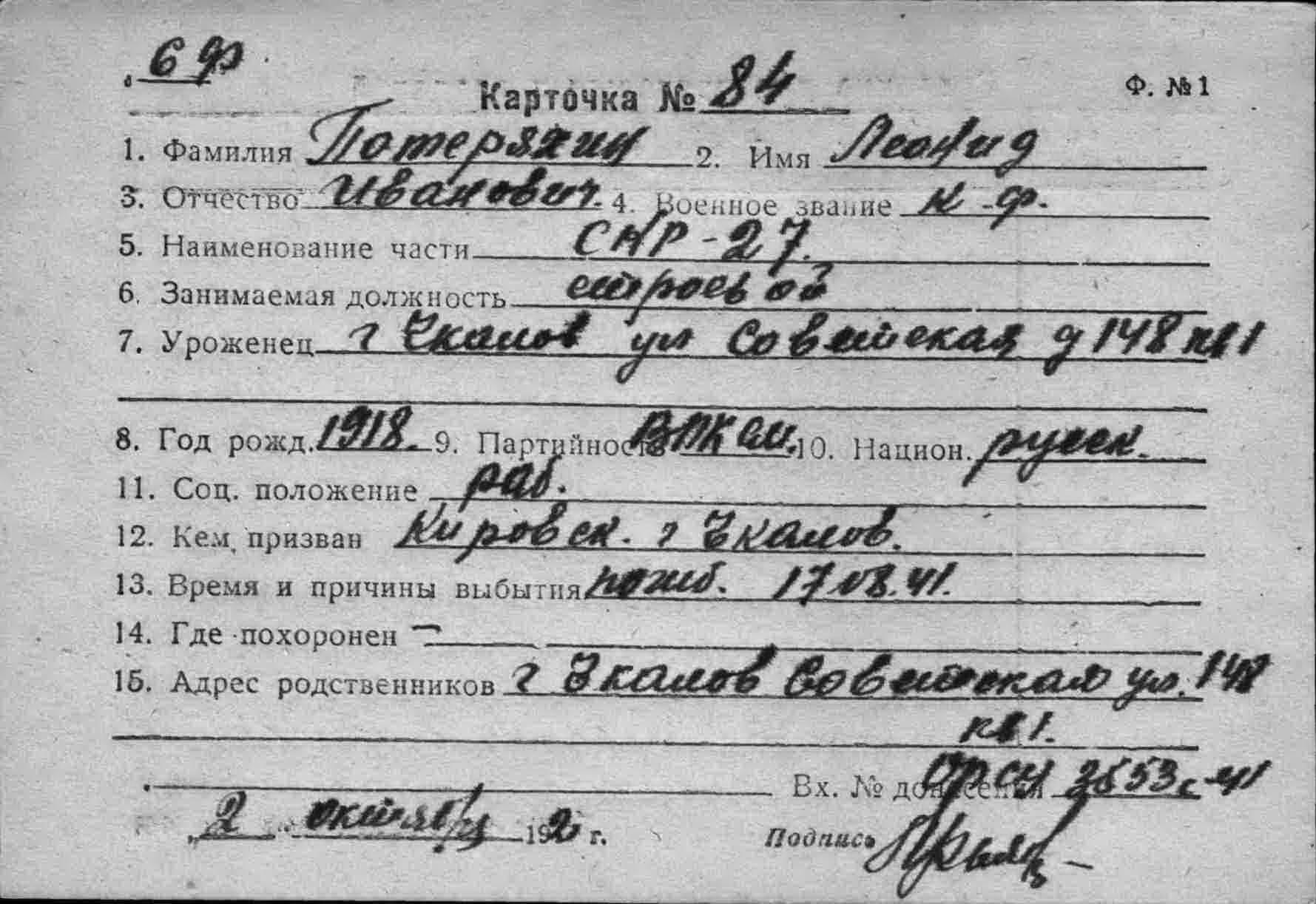 ПОТЕРЯХИН Леонид Иванович, к/ф, строевой