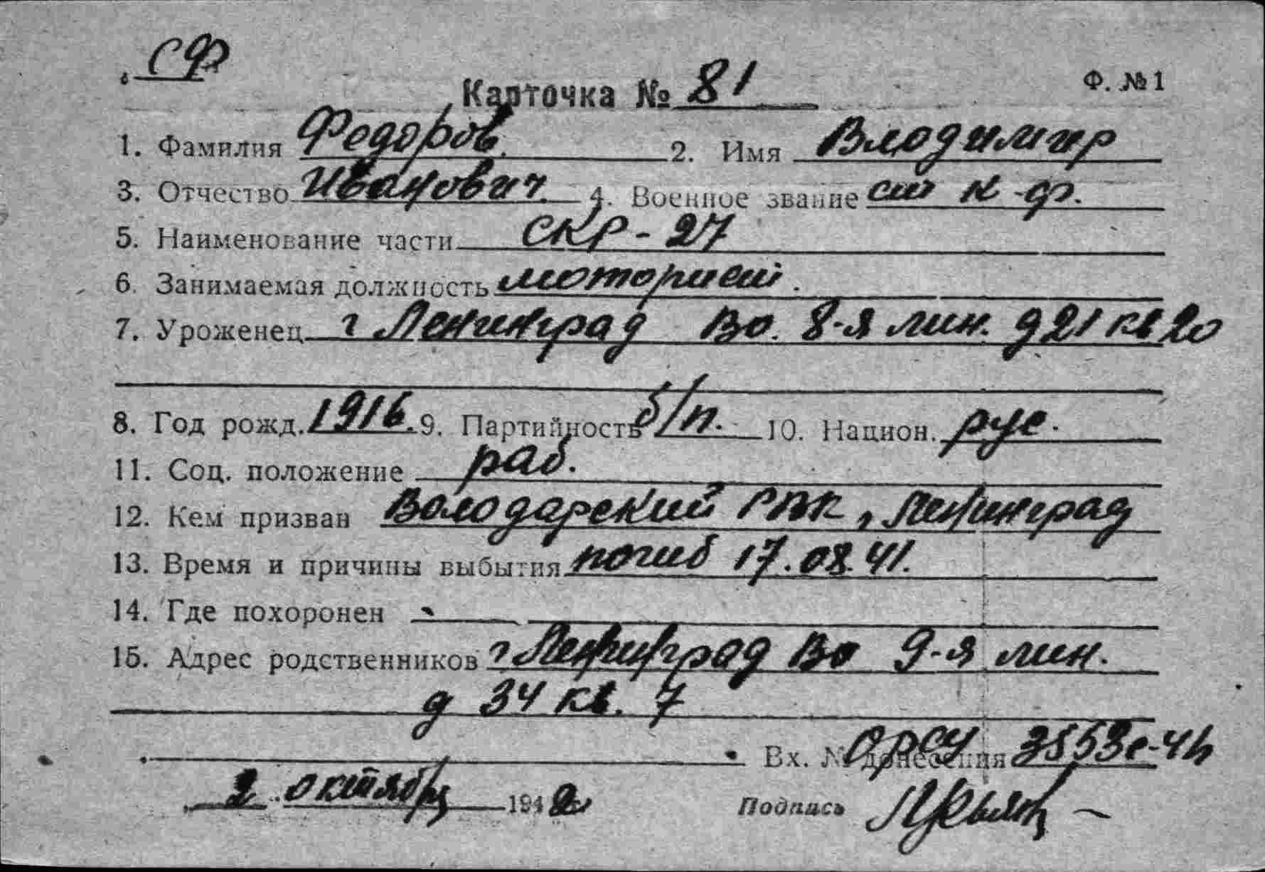 ФЕДОРОВ Владимир Иванович, старш.к/ф, моторист ст.