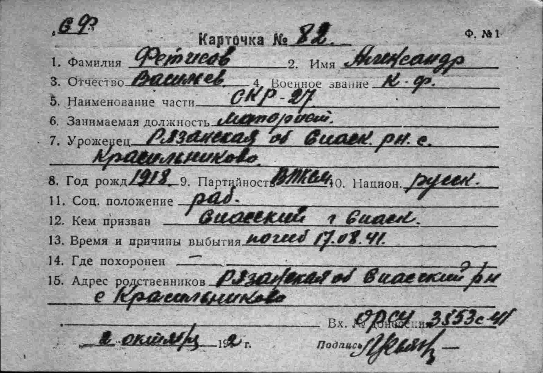 ФЕТИСОВ Александр Васильевич, к/ф, моторист