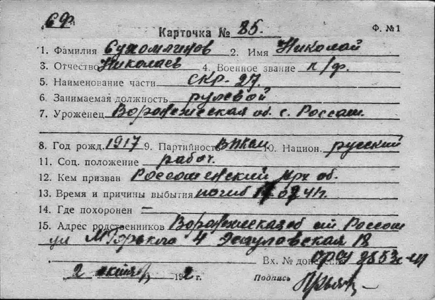СУХОМЛИНОВ Николай Николаевич, к/ф, рулевой