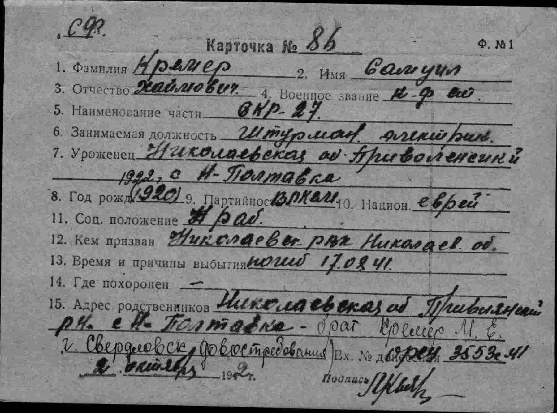 КРЕМЕР Самуил Хаймович, старш.к/ф, штурман электр.ст.
