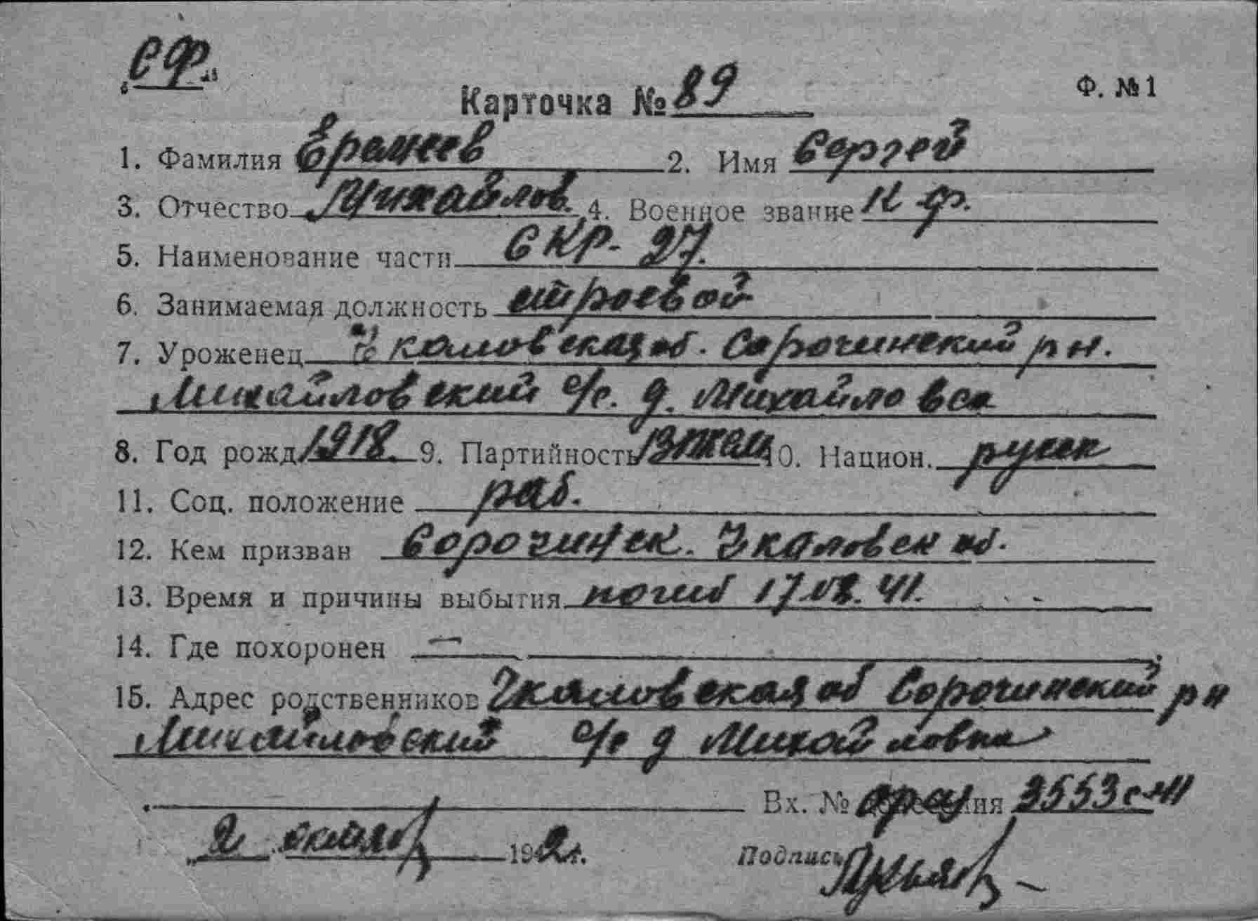 ЕРЕМЕЕВ Сергей Михайлович, к/ф, строевой