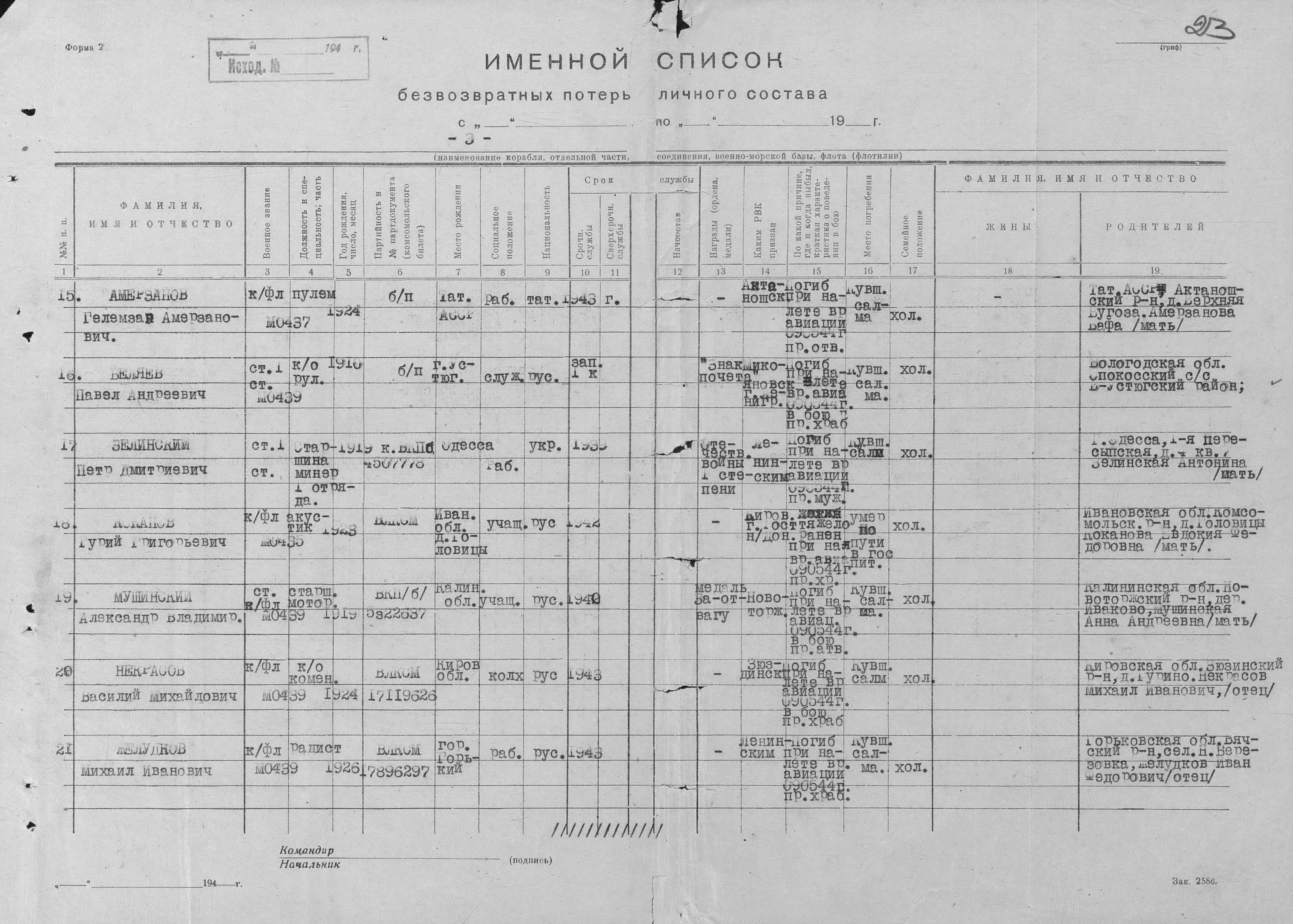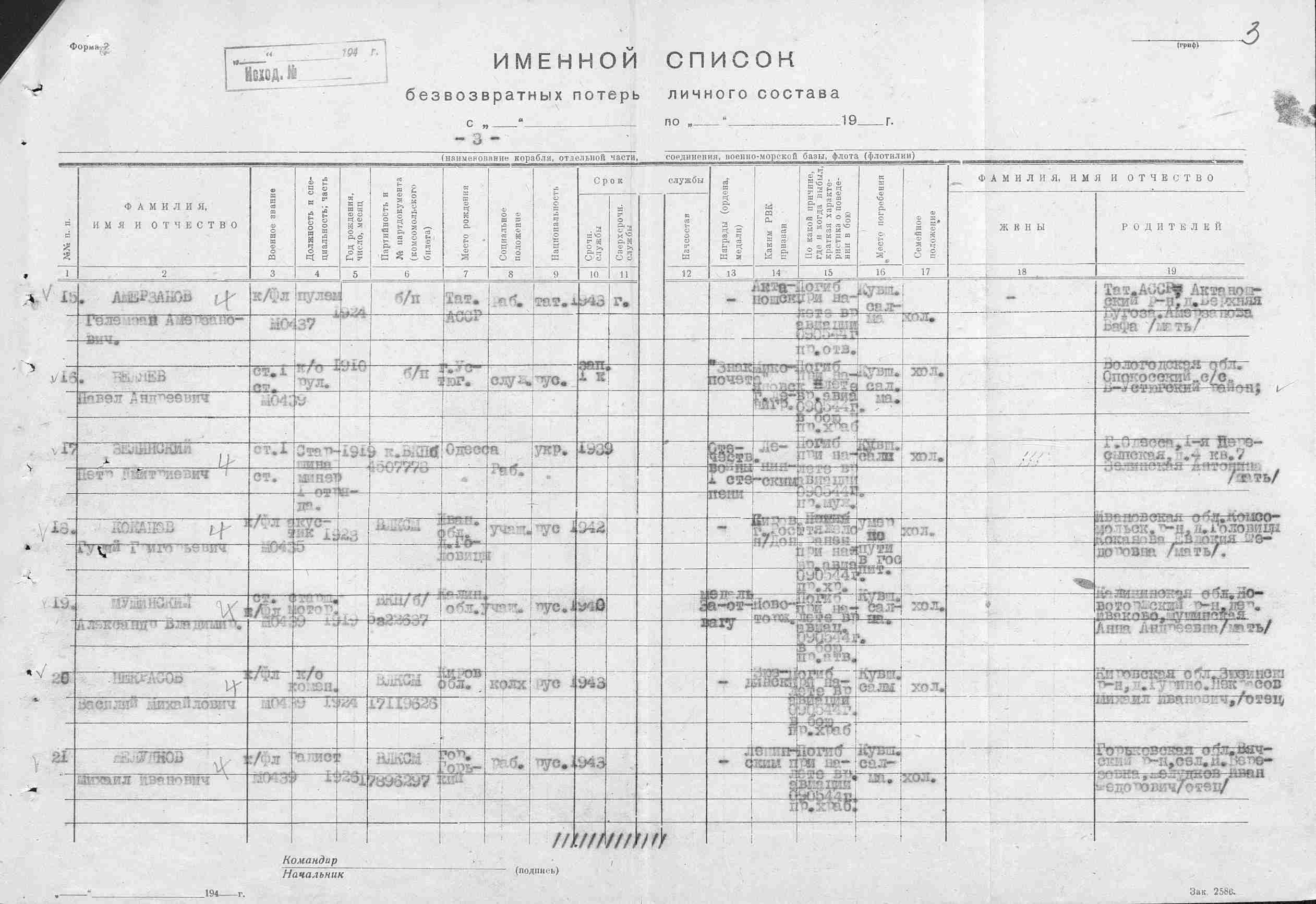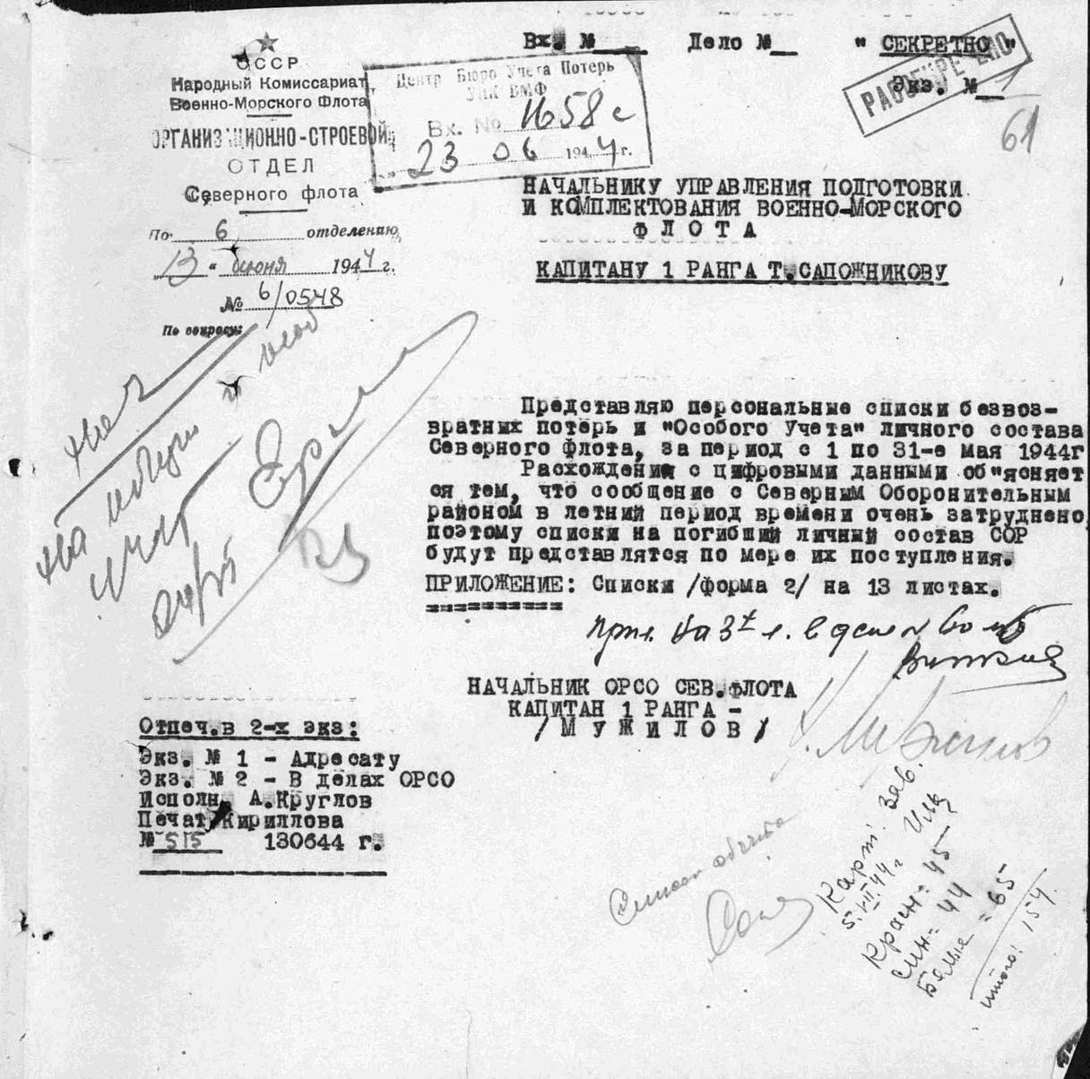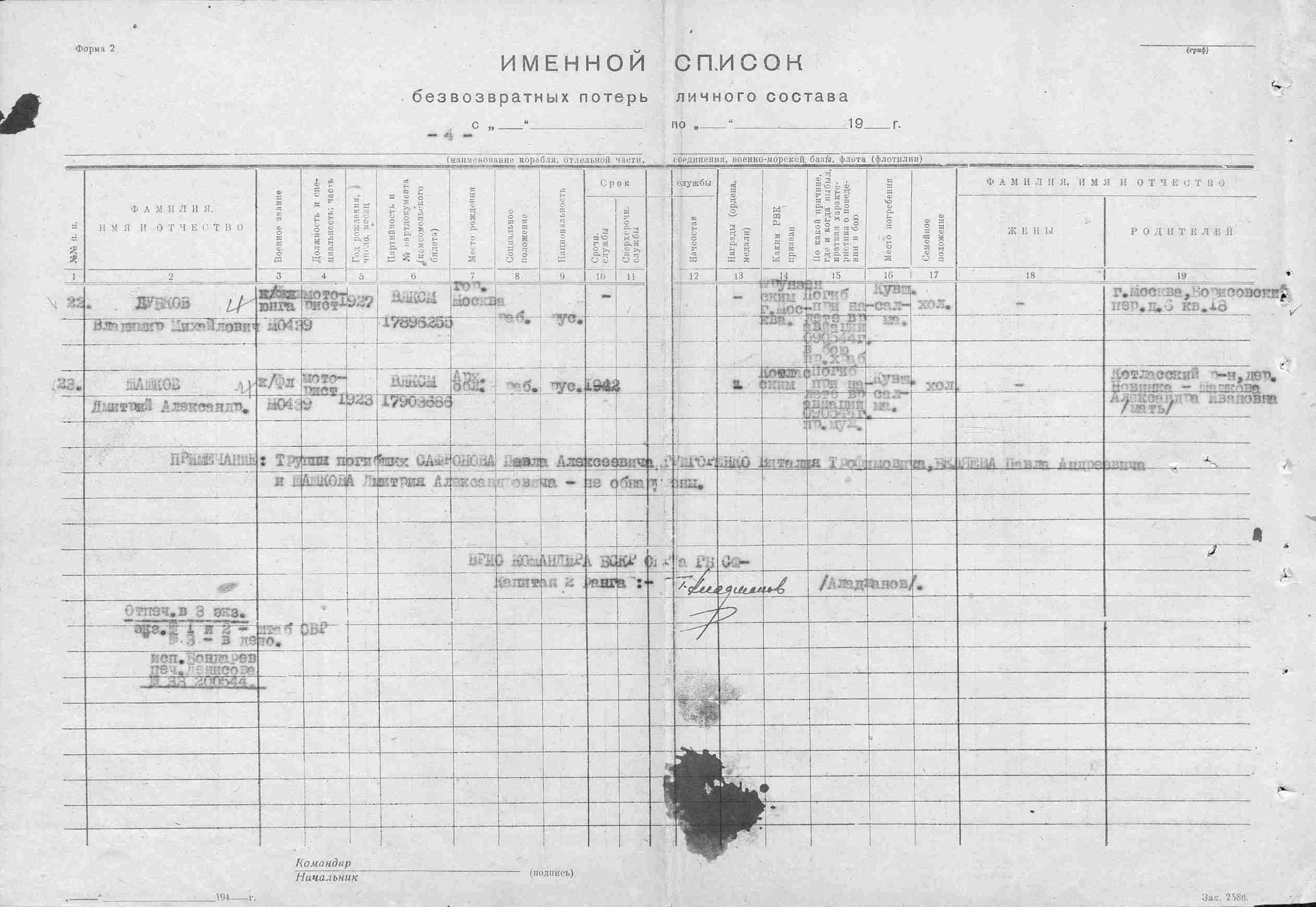 Список членов экипажа МО-435, МО-437, МО-439 БСКР ОВРа ГБ СФ погибших 9 мая 1944 г. при авианалете германской авиации в Кувшинской Салме