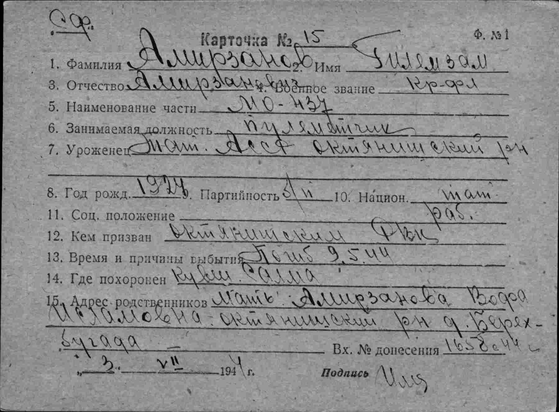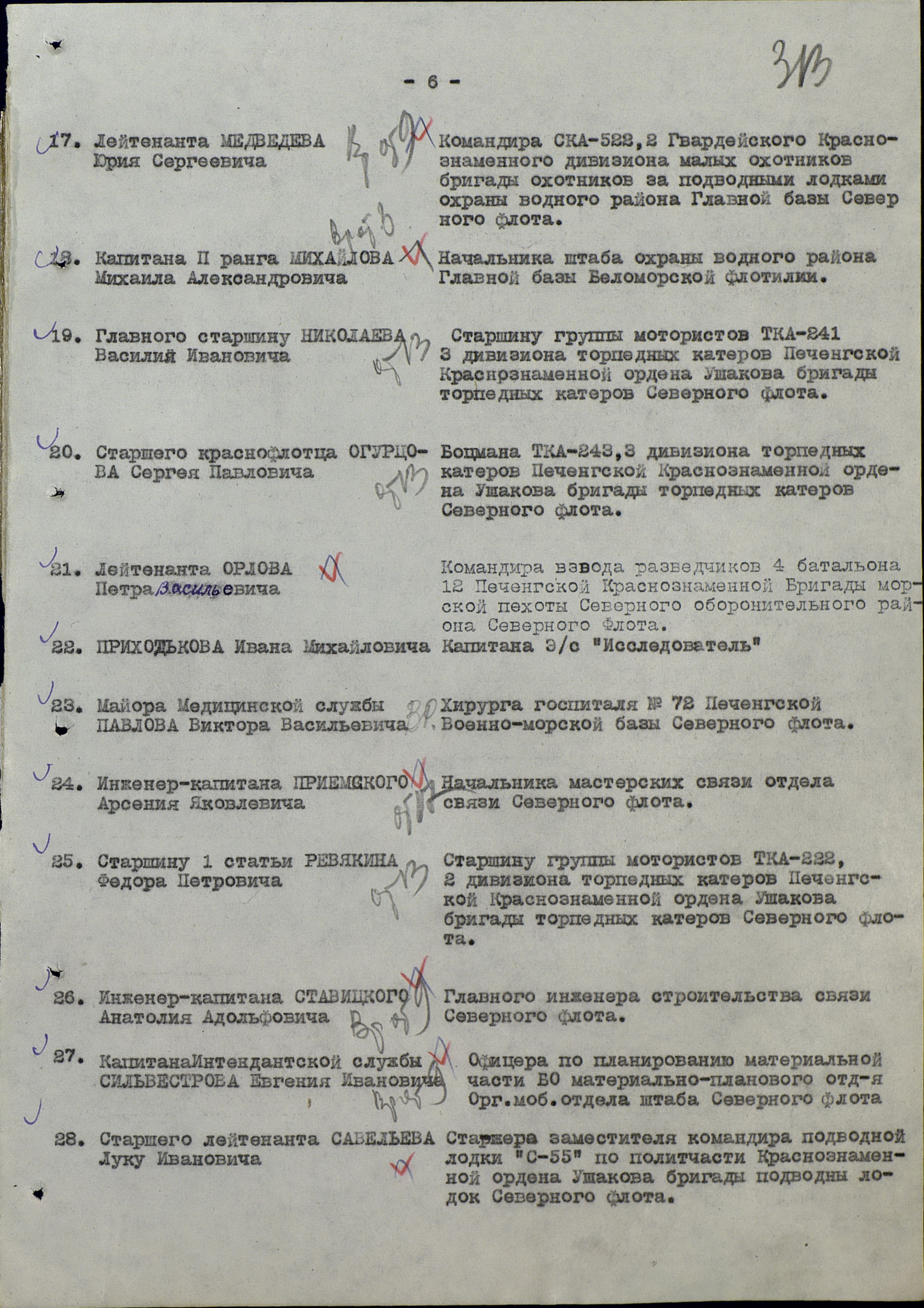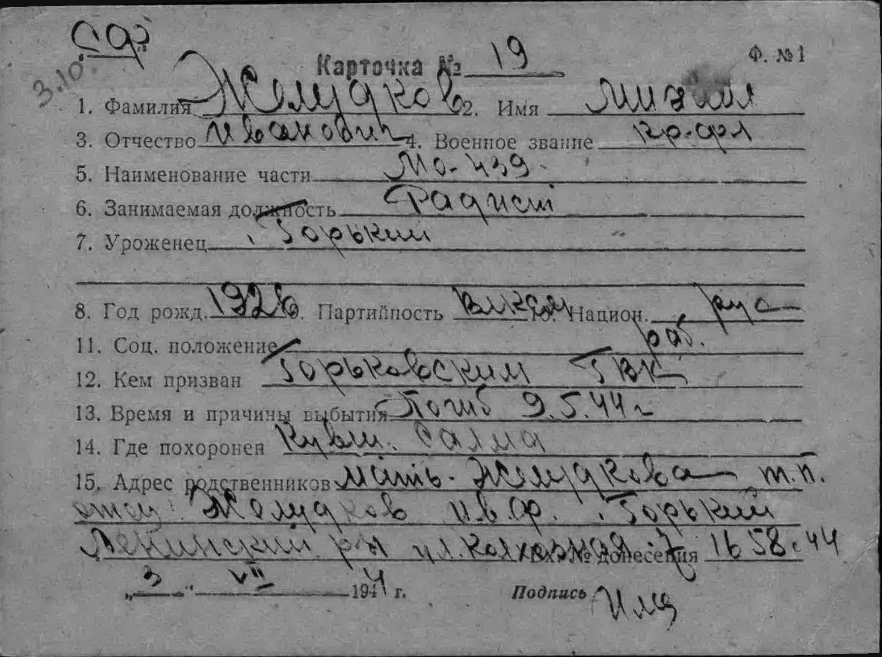 Наградной лист: фонд 3 опись 1 единица хранения 1026
