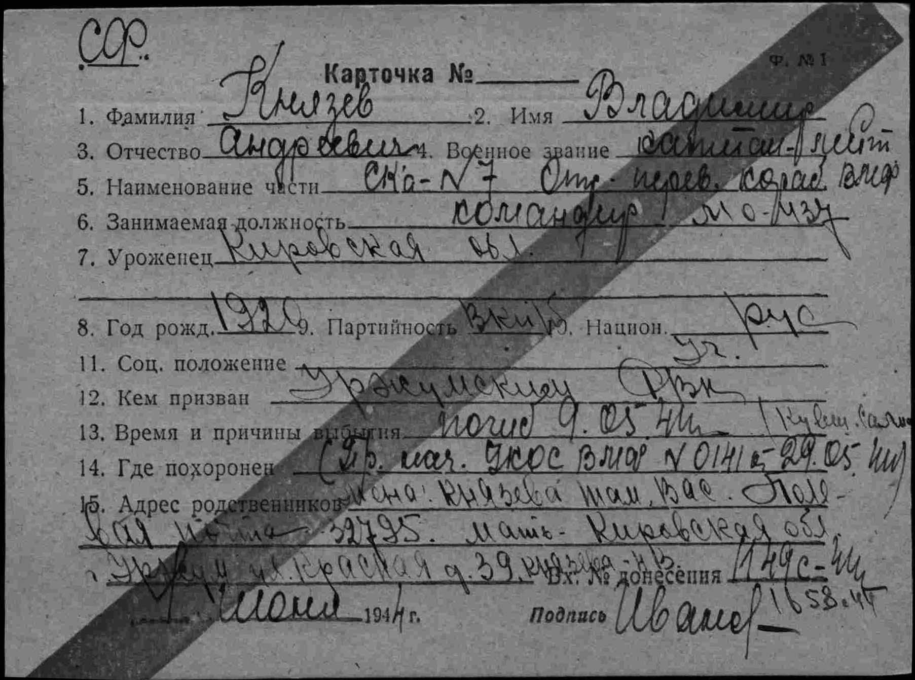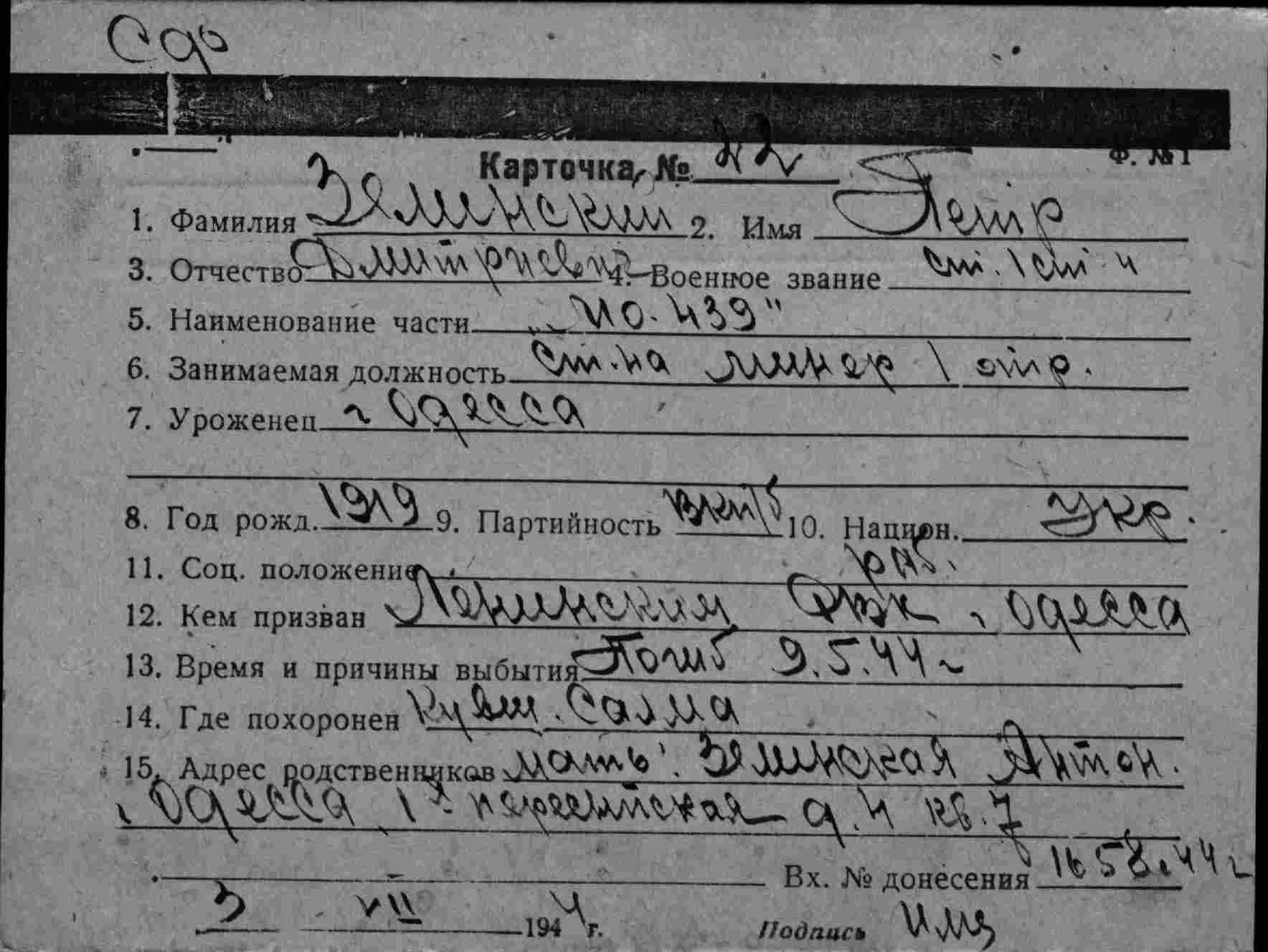 Дата и место призыва Ленинский РВК, Украинская ССР, г. Одесса, Ленинский р-н