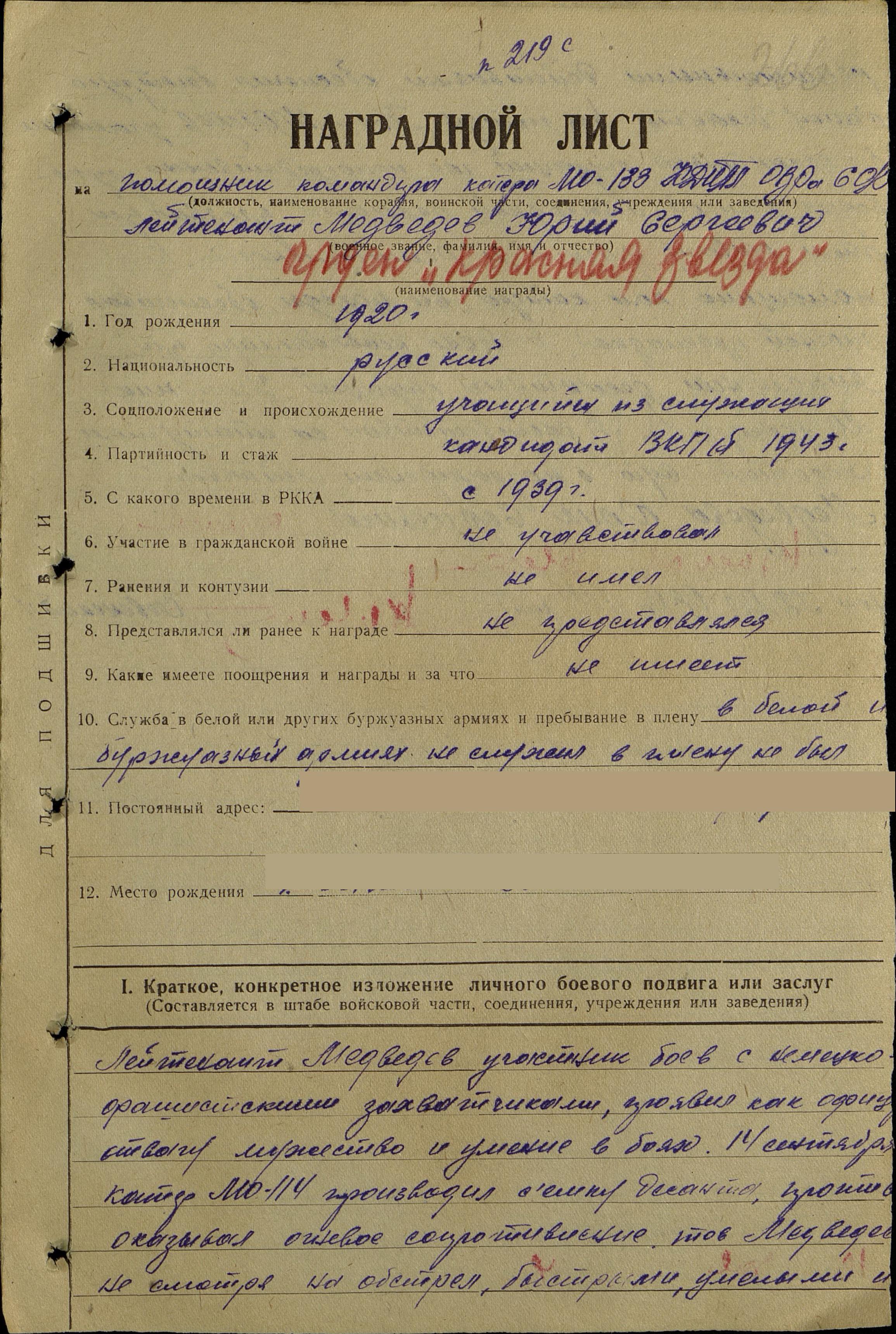 МЕДВЕДЕВ Юрий Сергеевич, лейтенант, МО-443