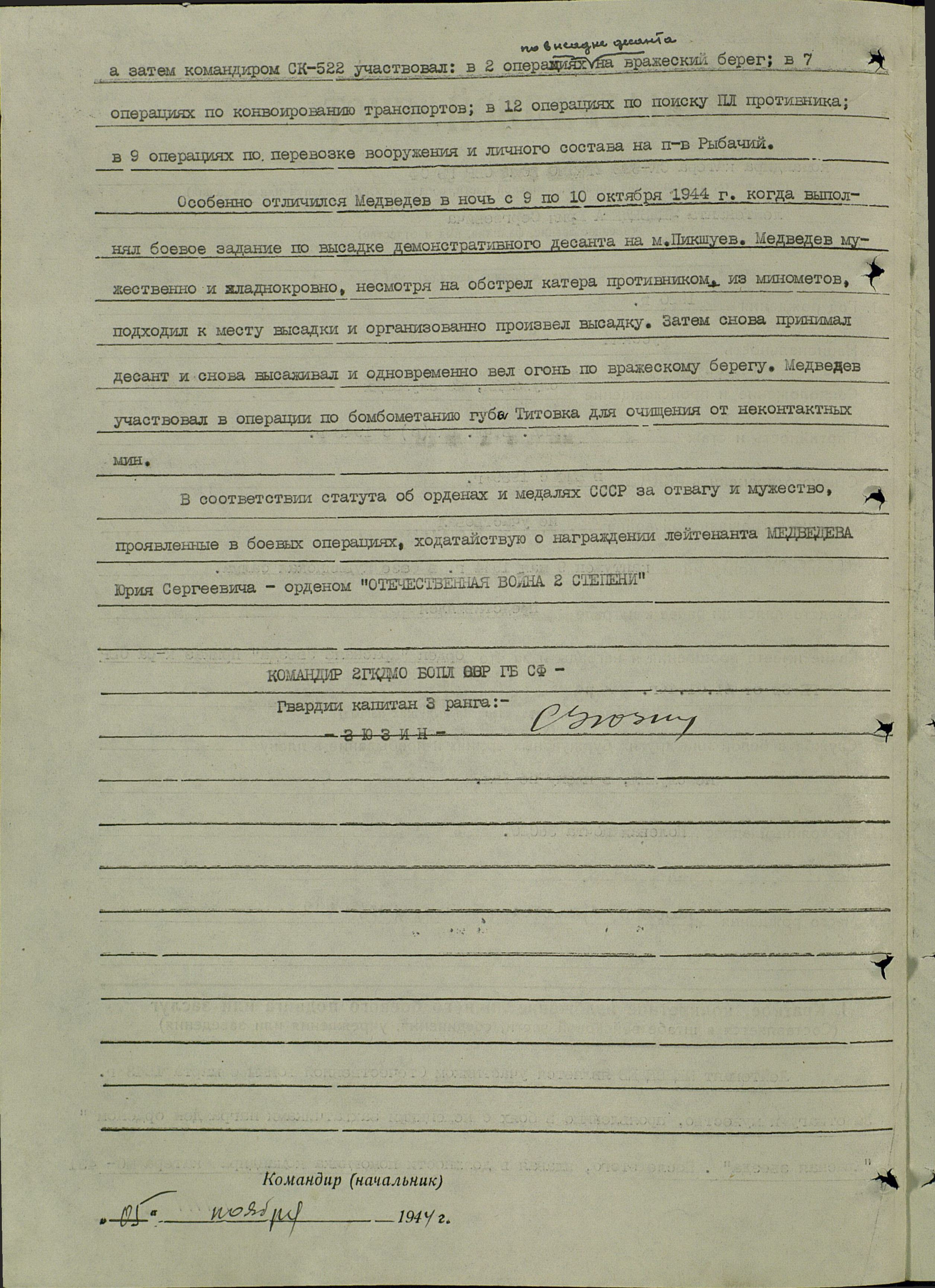 1, МЕДВЕДЕВ Юрий Сергеевич, лейтенант, МО-443