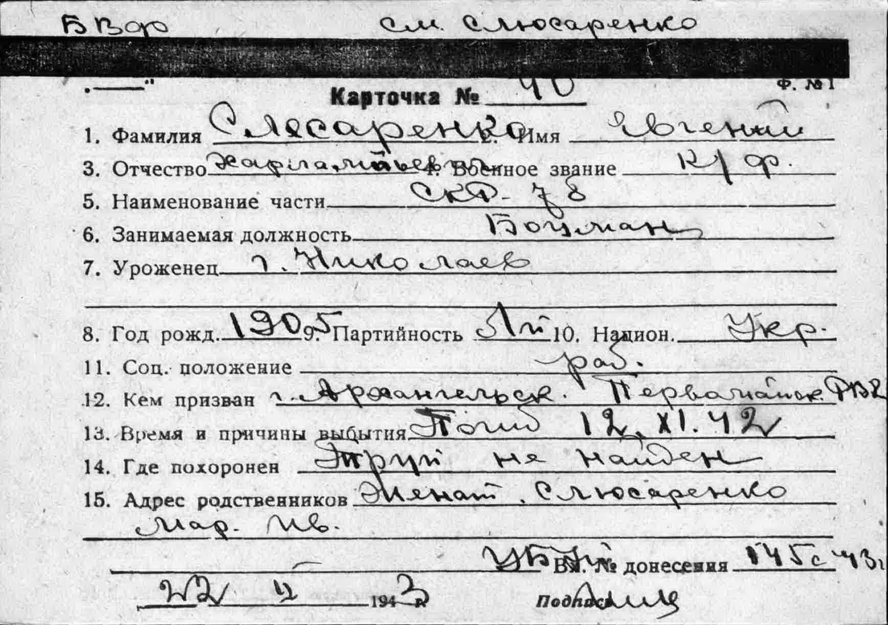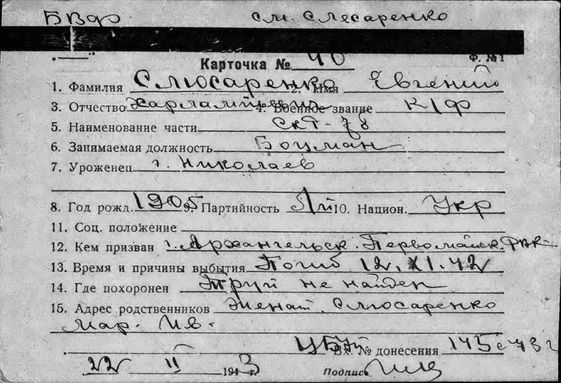 Слесаренко (Слюсаренко) Евгений Харлампьевич,к/фл.,боцман