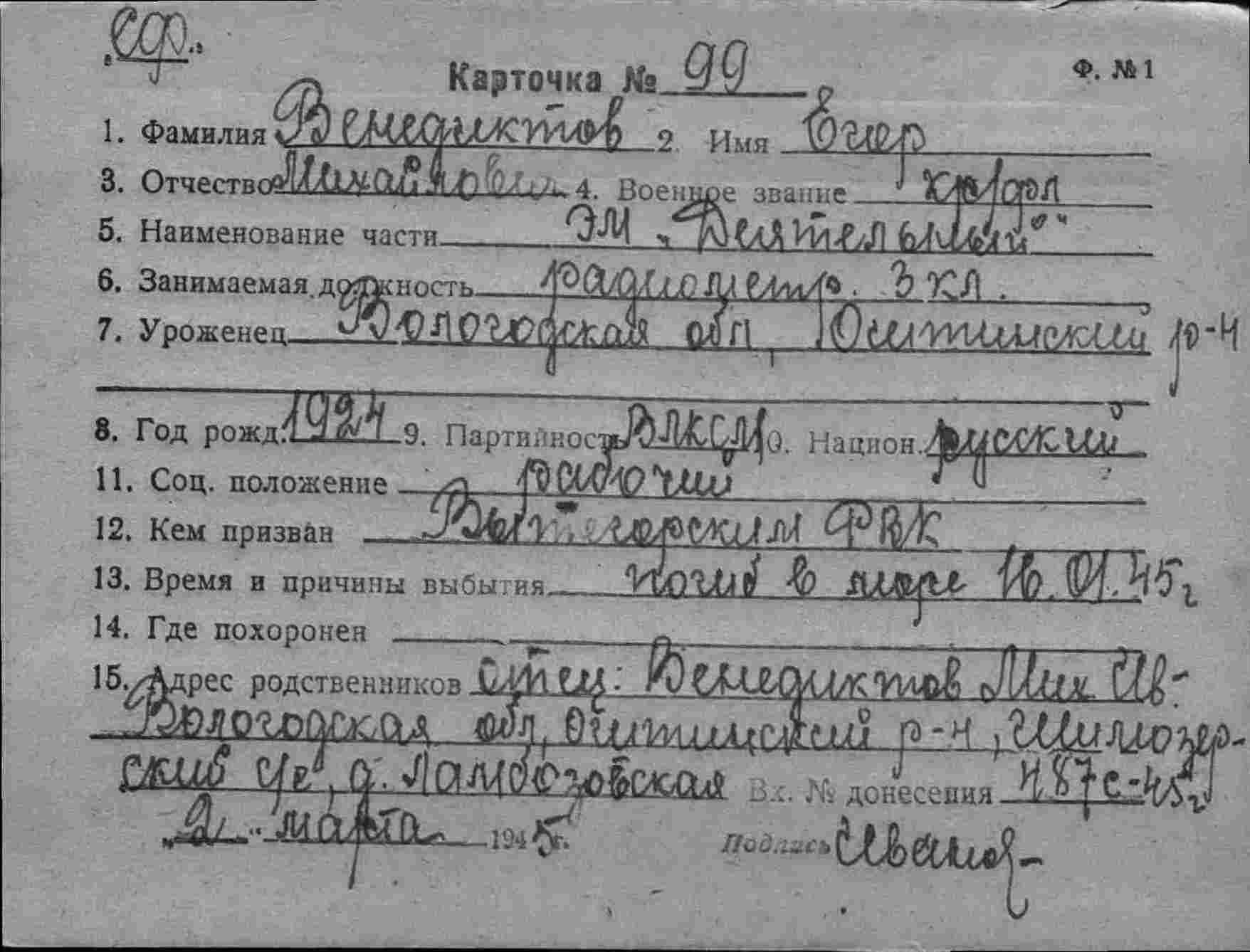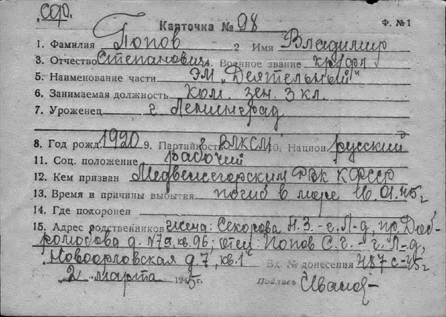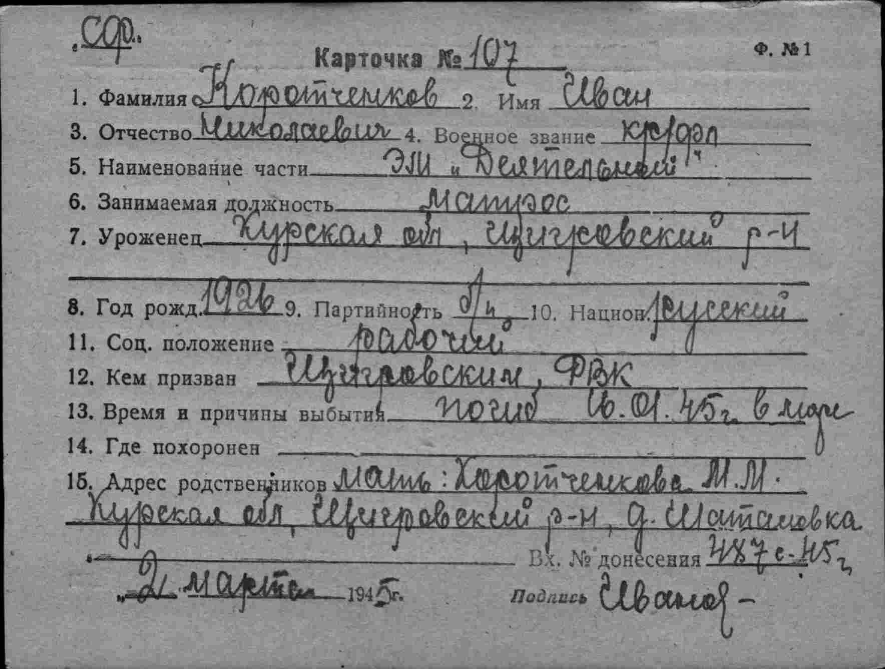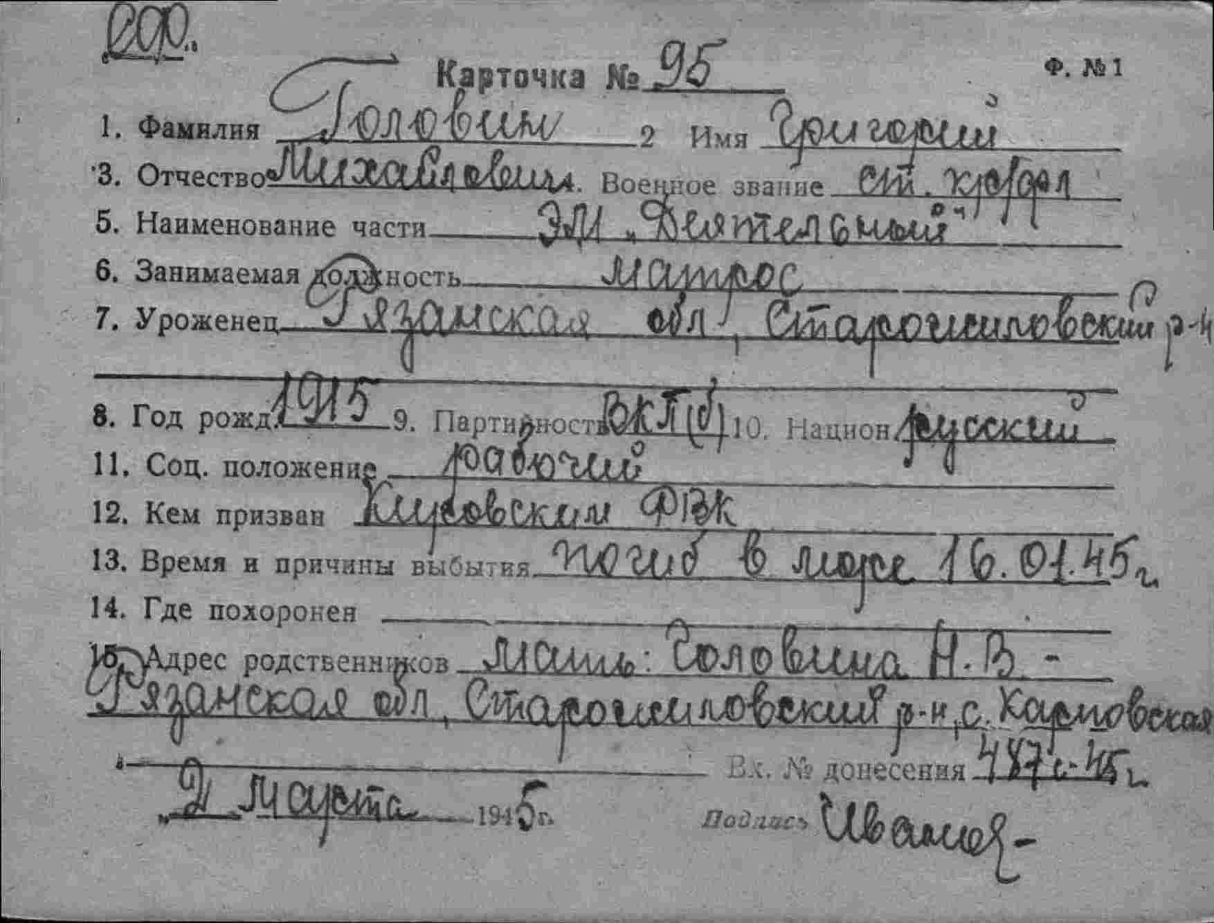 Дата выбытия 16.01.1945