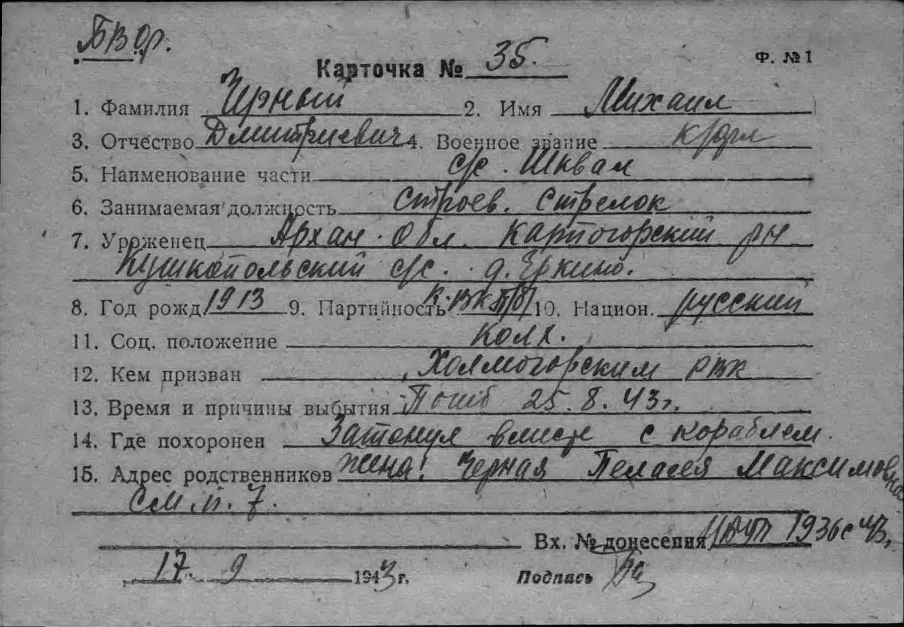 Черный Михаил Дмитриевич краснофлотец строевой