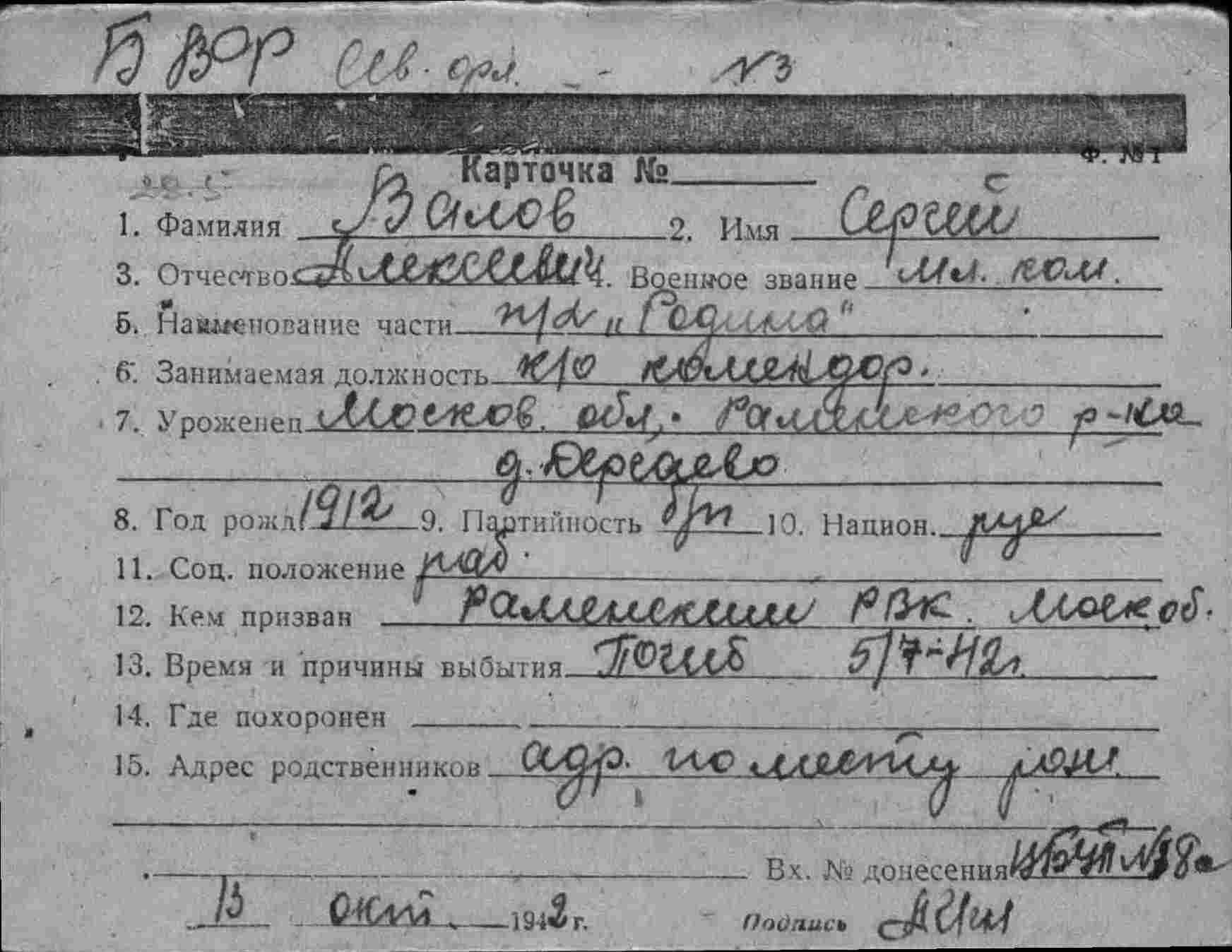 7. Валов Сергей Александрович (по др. данным Алексеевич-