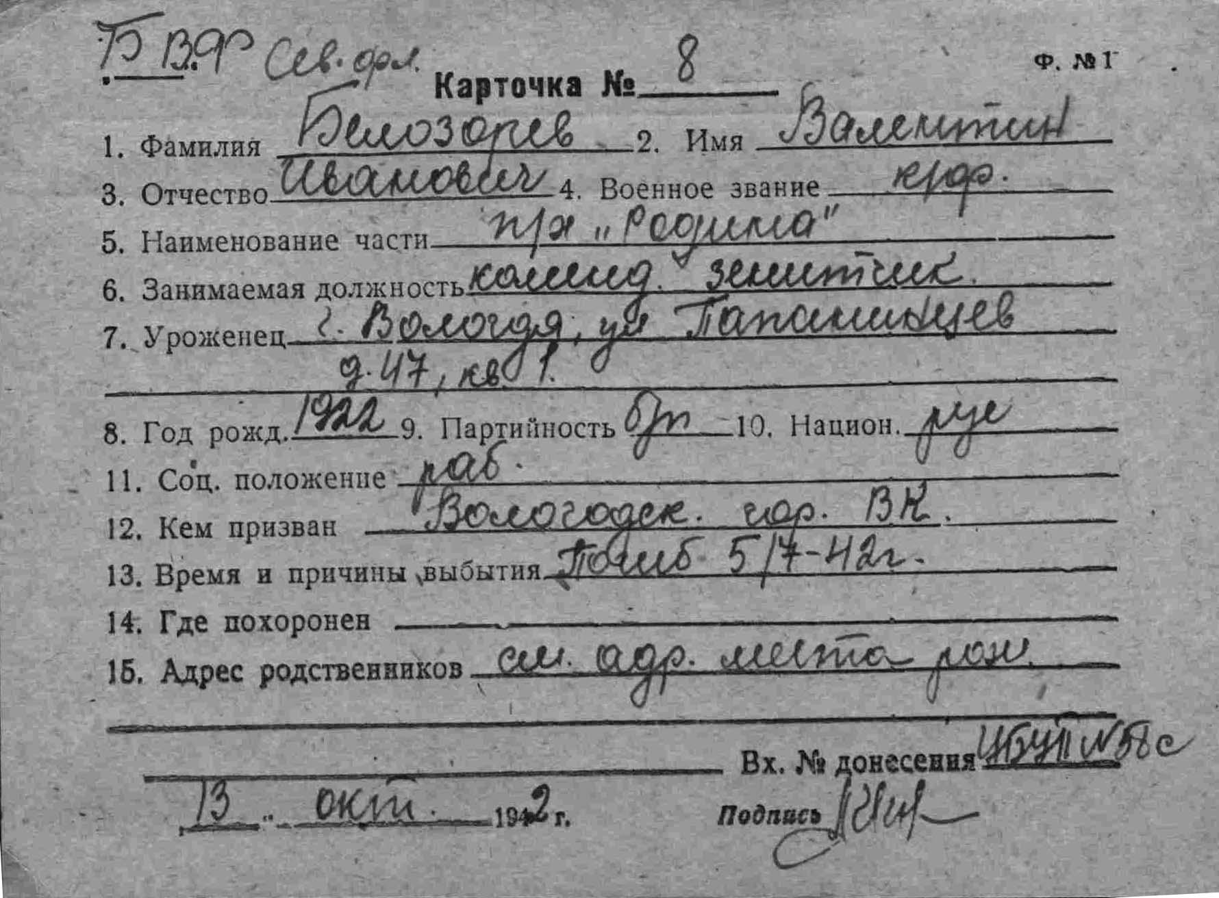 5. Белозеров Валентин Иванович (по др. данным Белозорев-