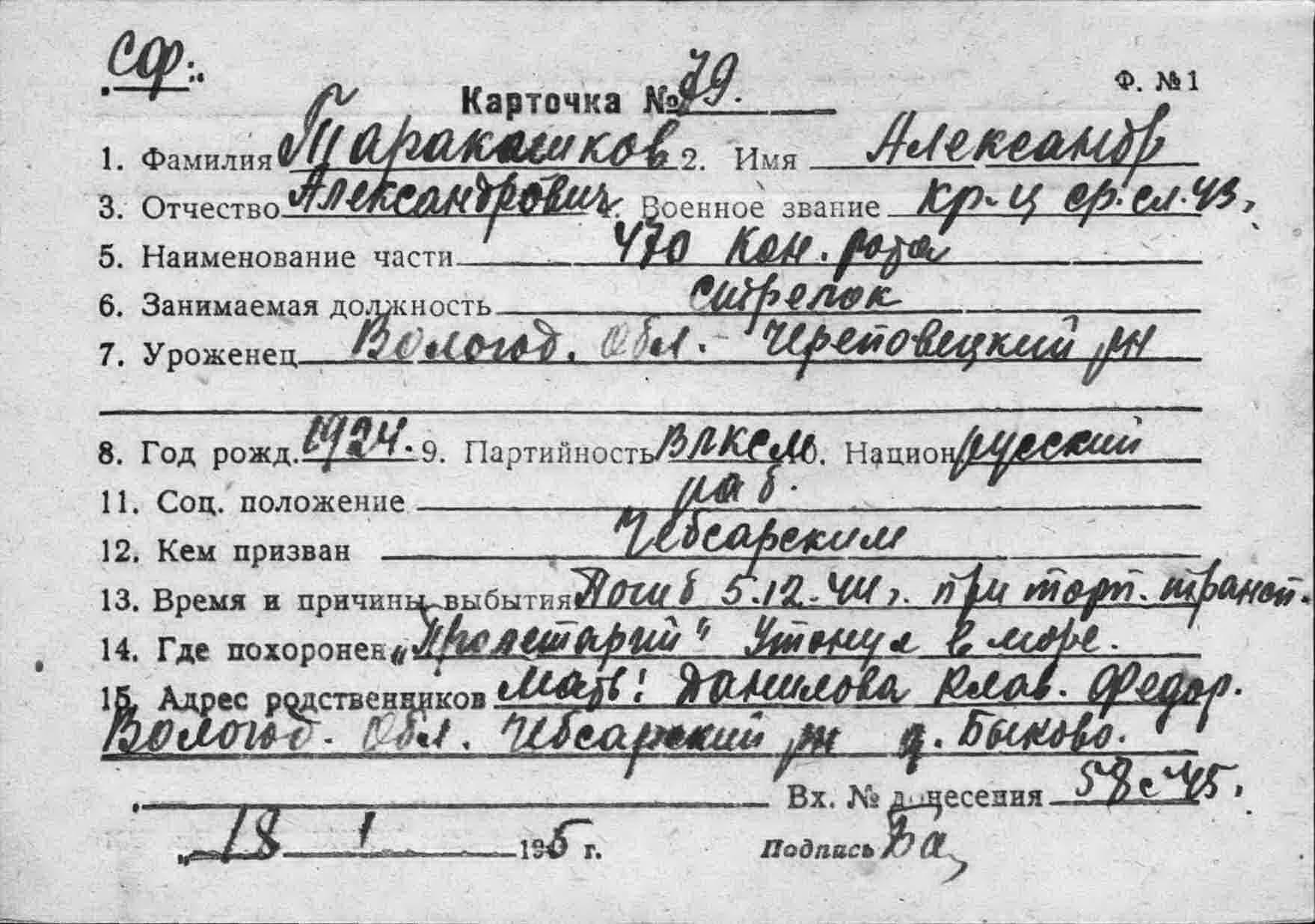 14,Попов Владимир Егорович,1926,матрос первого класса парохода «Пролетарий»
