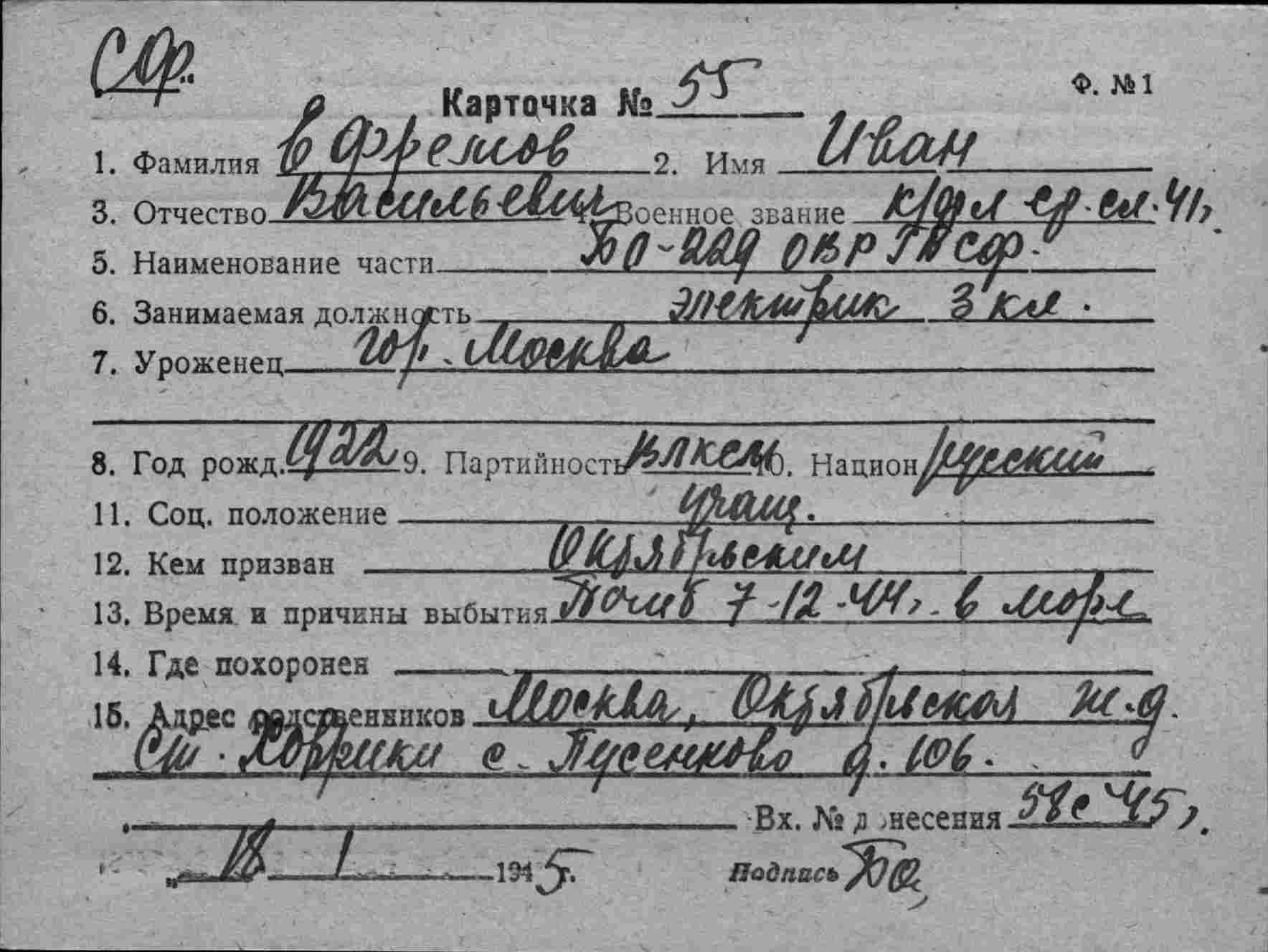 Дата выбытия 07.12.1944