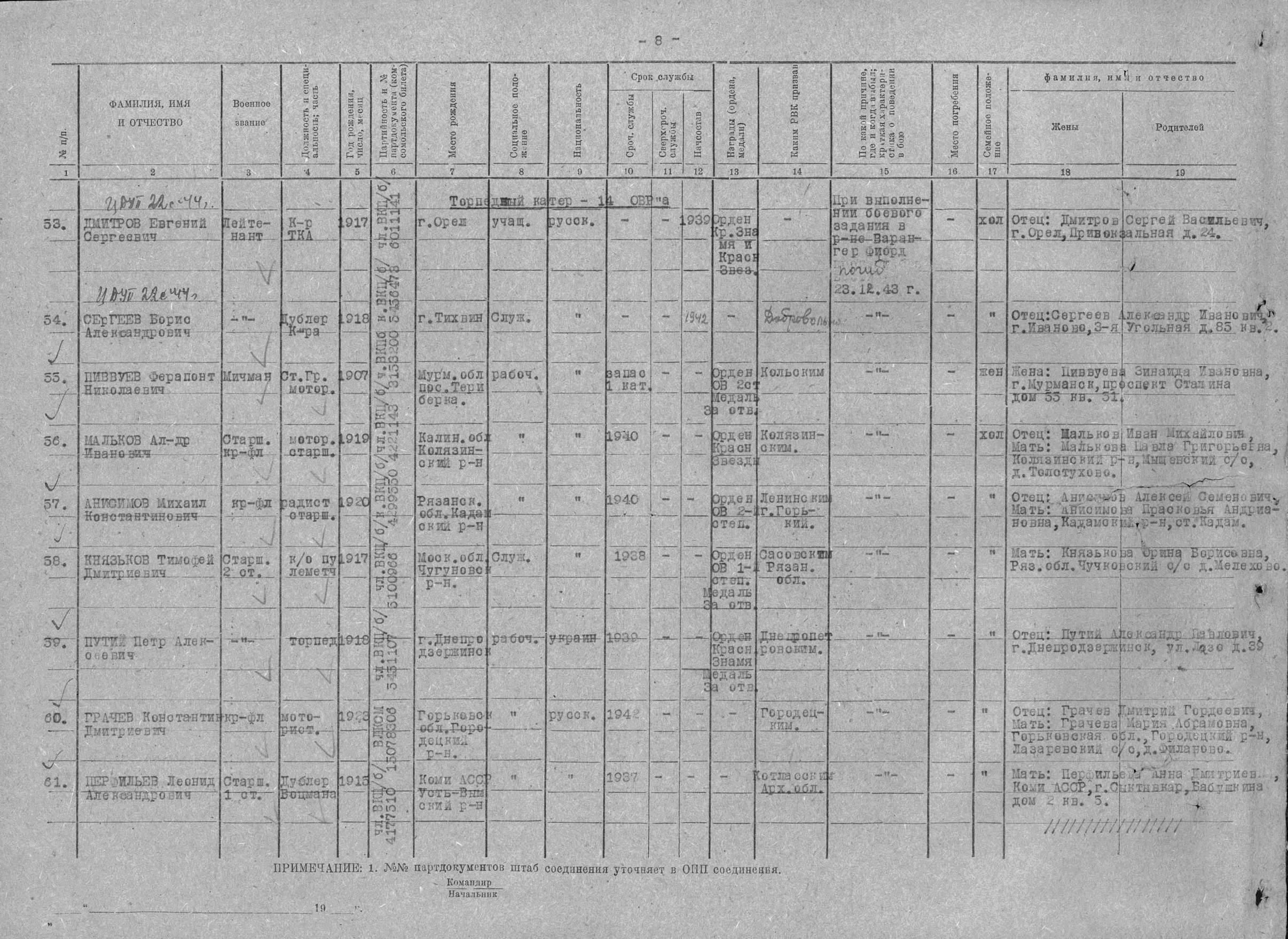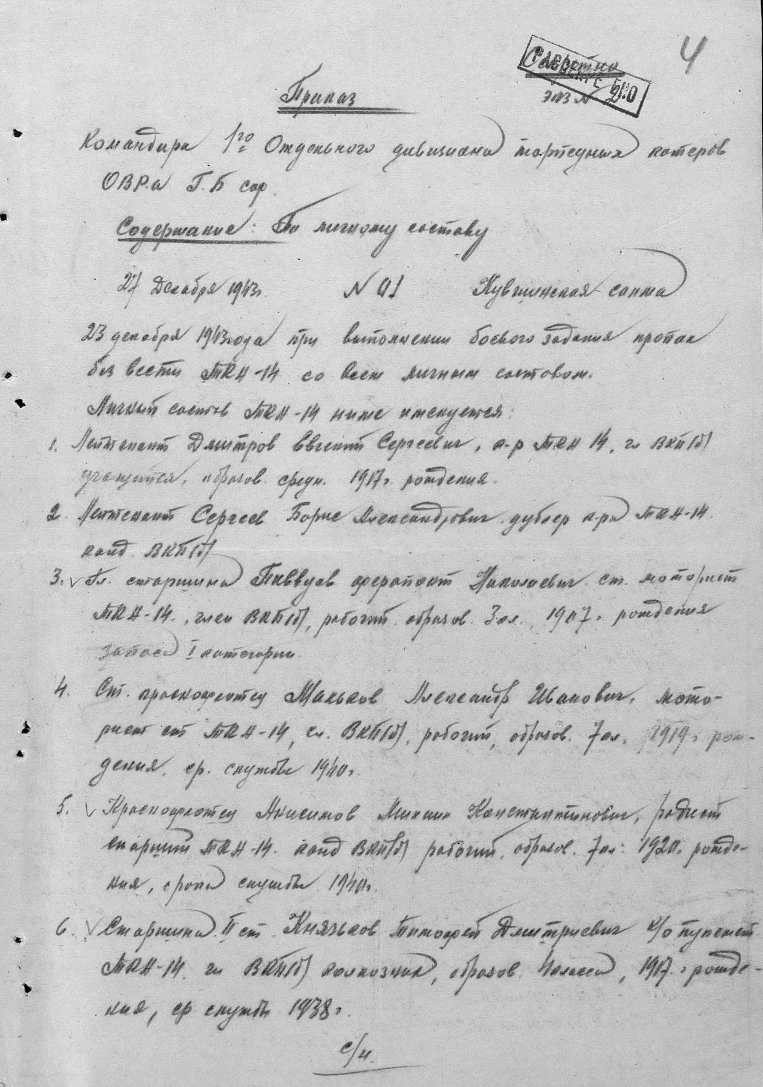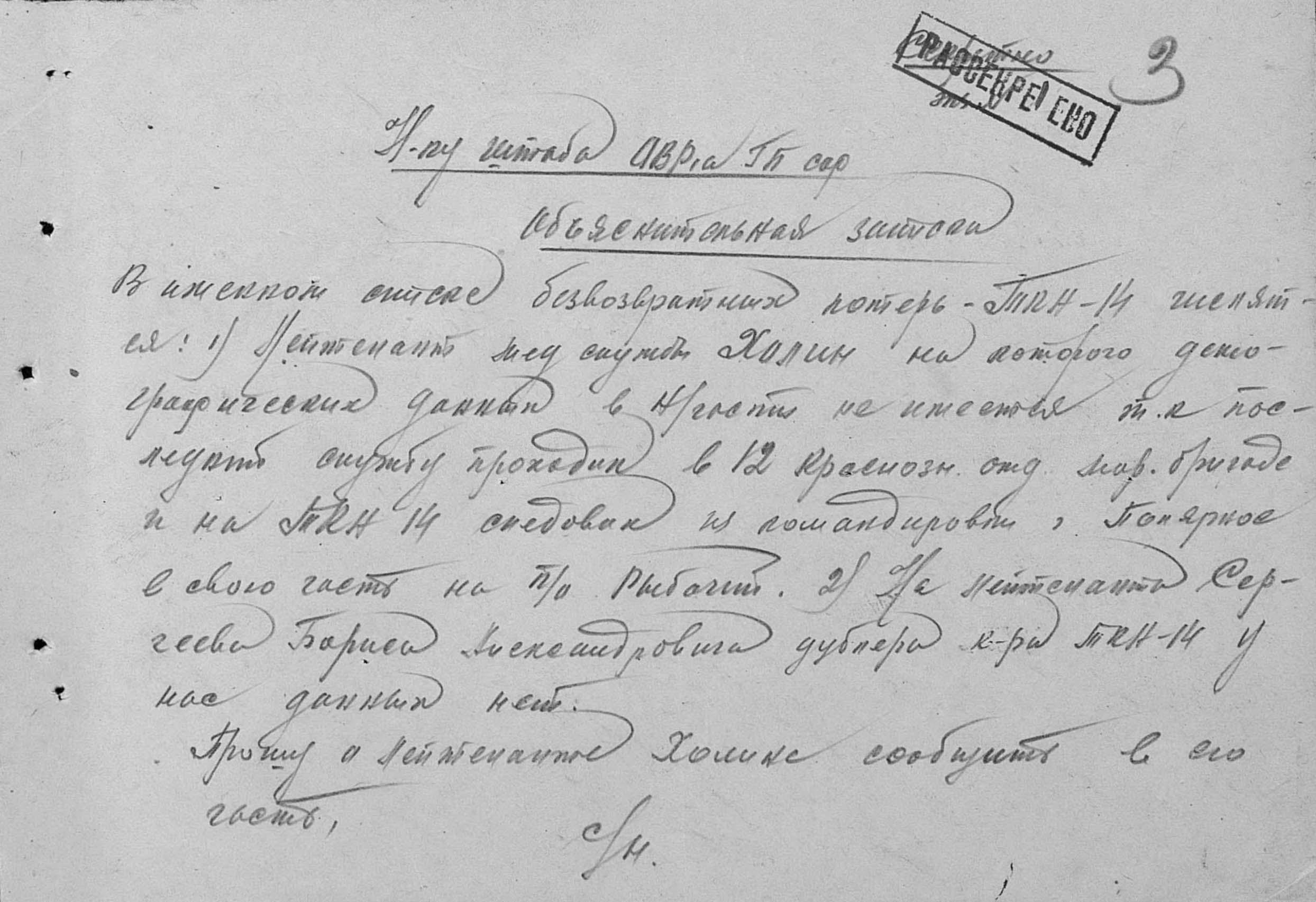 2).на лейтенанта Сергеева Бориса Александровича дублера к-ра ТКА-14 у нас данных нет.