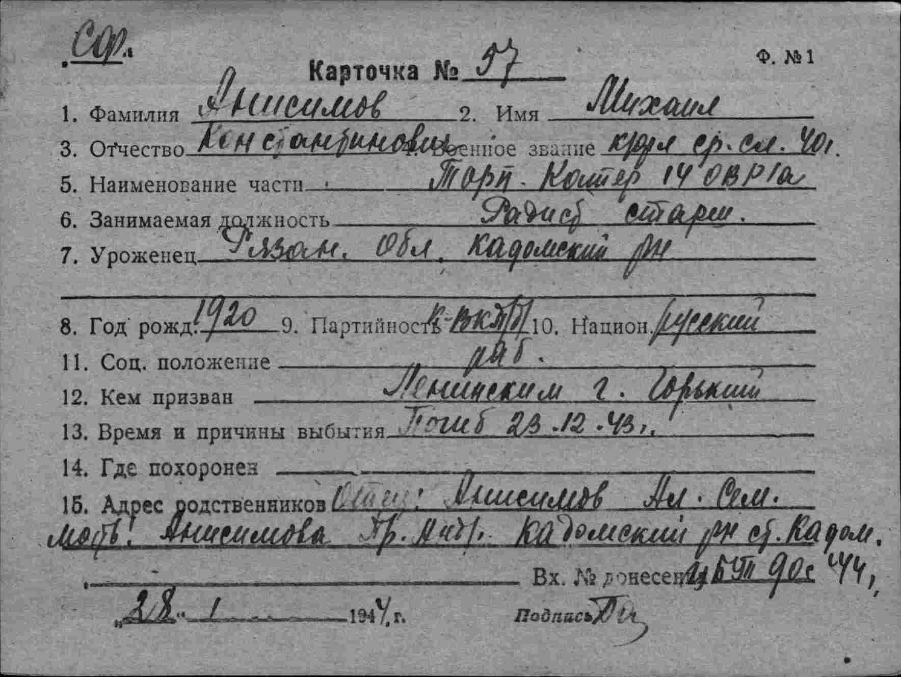 В именном списке безвозвратных потерь-ТКА-14 числятся: