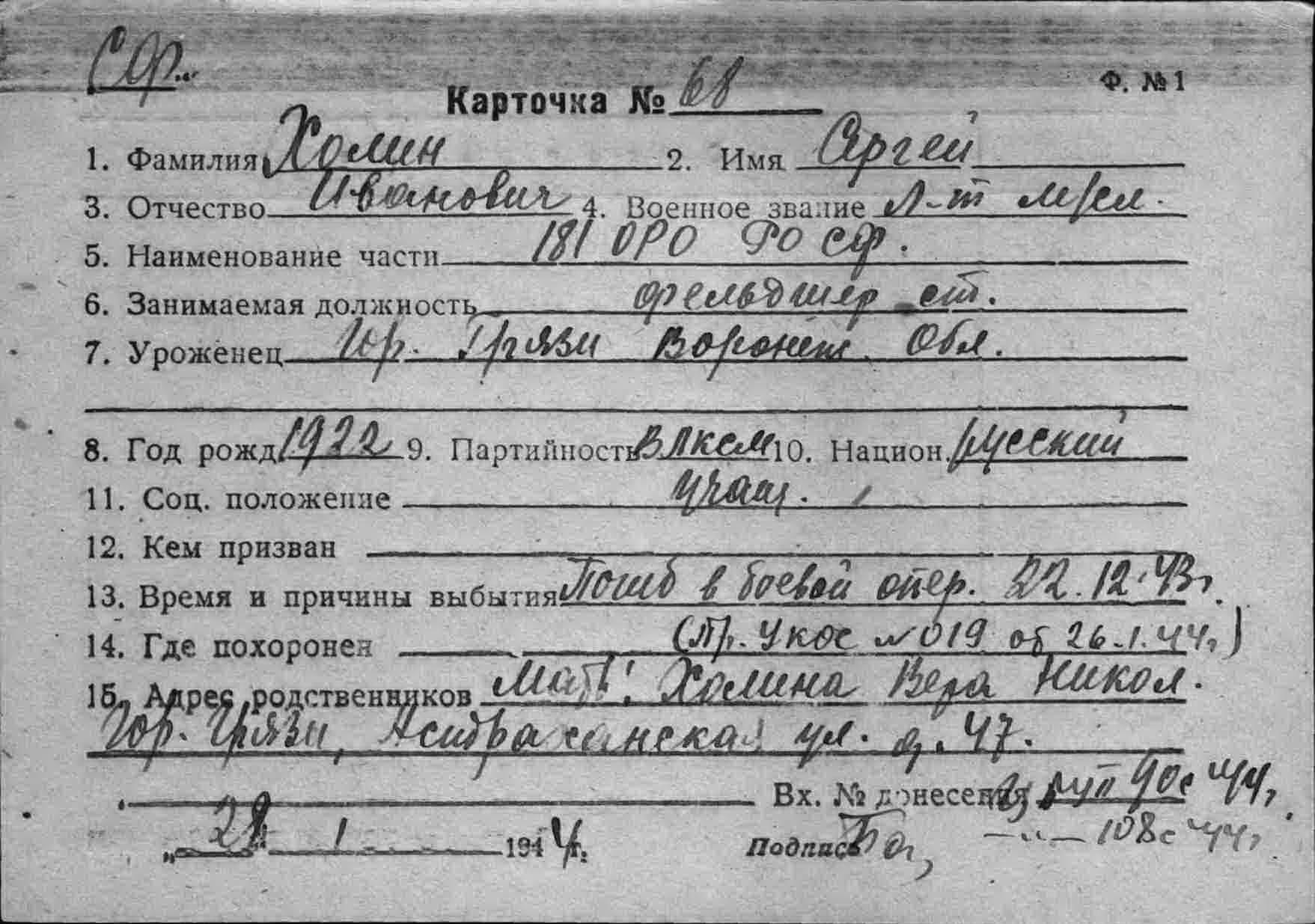 1).Лейтенант мед.службы Холин на которого демографических данных в н/части не имеется т.к.