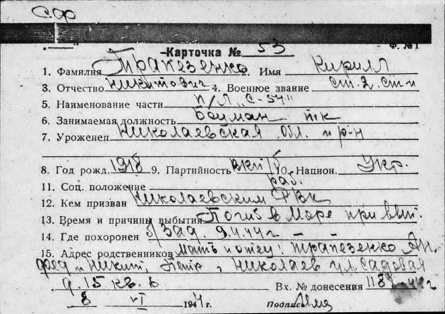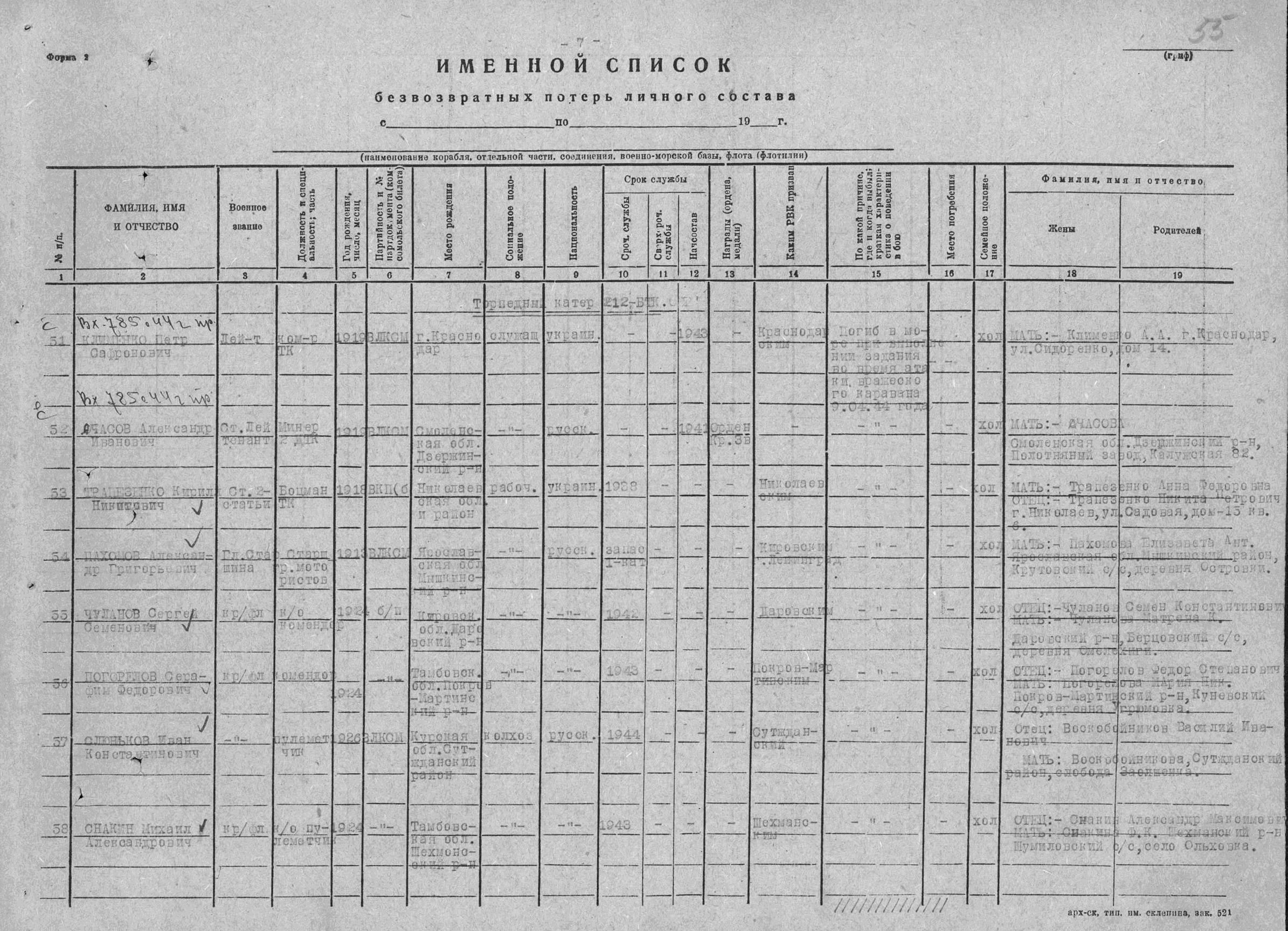 padsee - В картотеке безвозвратных потерь по членам экипажа ТКА-212 №№3-13 указано: Последнее место службы СФ, п/л "С-54".