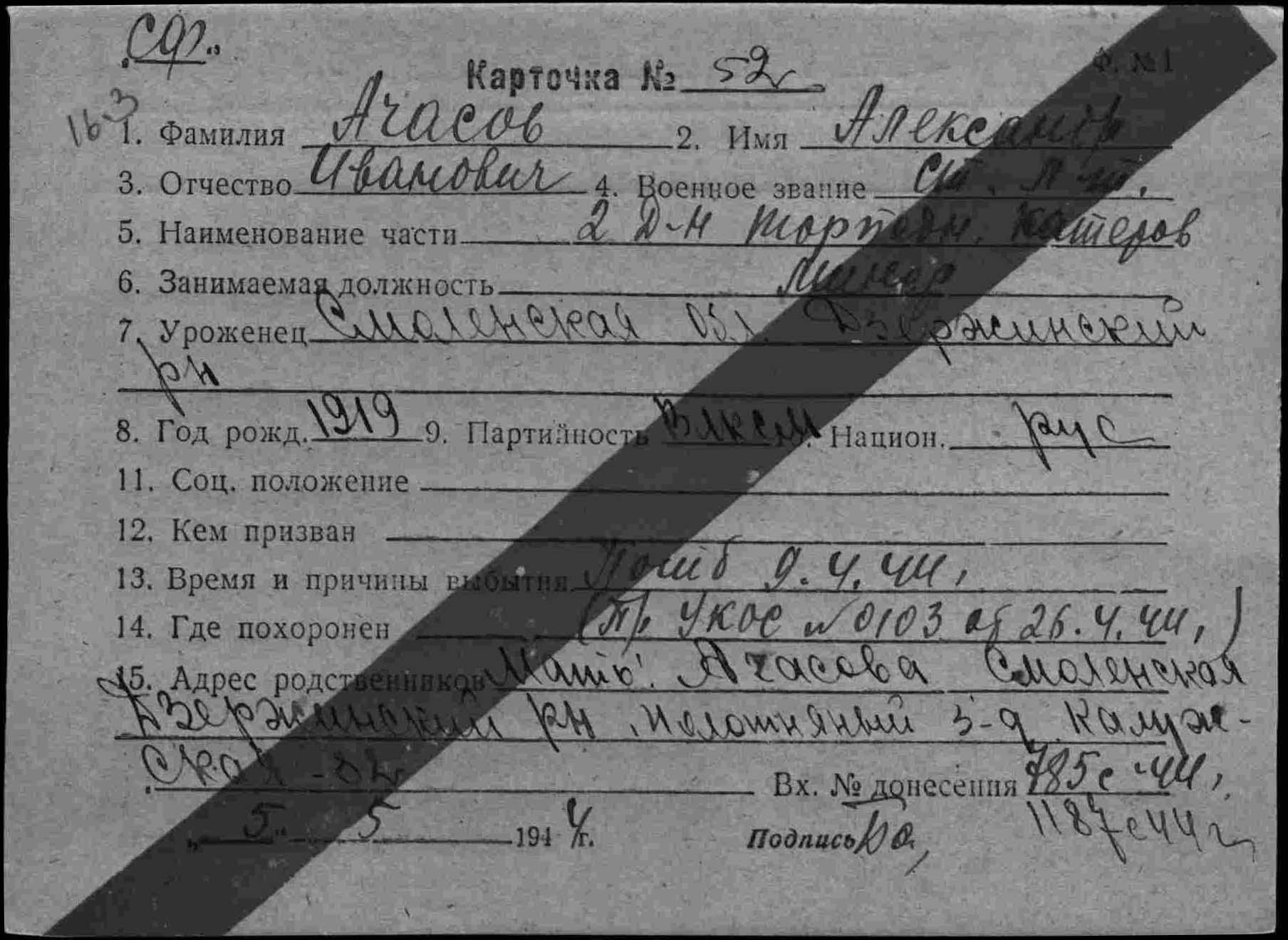 Что не соответствует донесению о безвозвратных потерях и повидимому является ошибкой при заполнении персональных карточек.