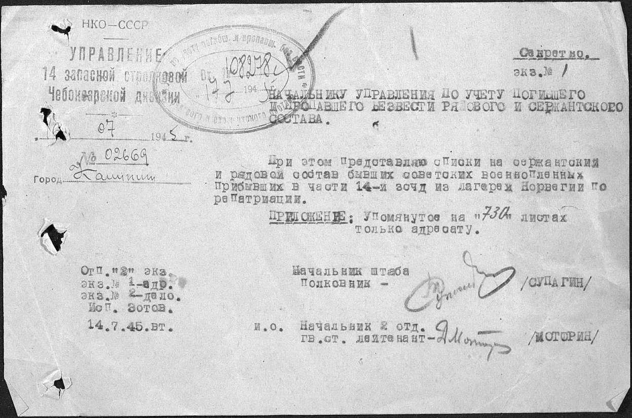 Донесения об освобожденных из плена №108864 26.07.1945 ОМО Штаб Московского ВО