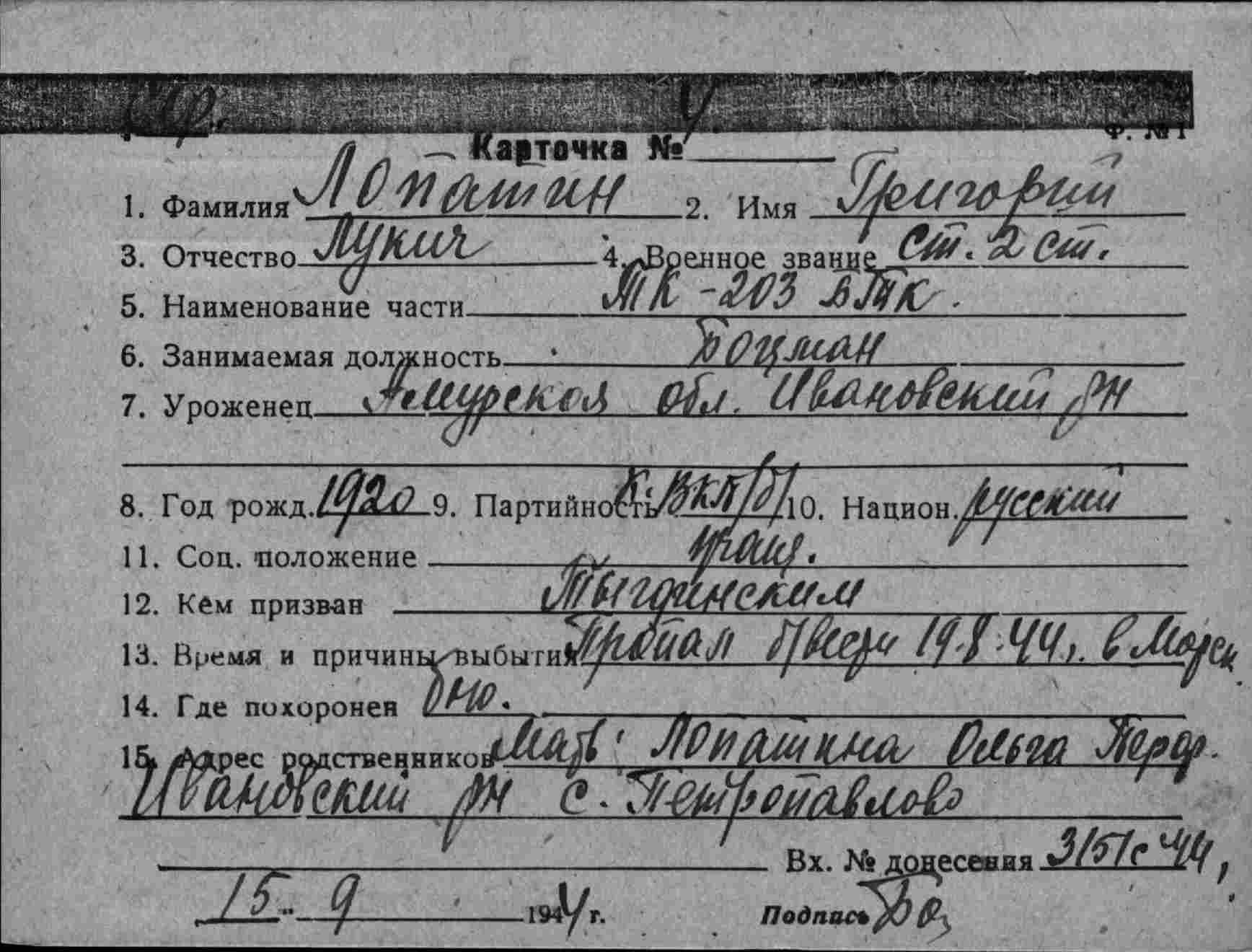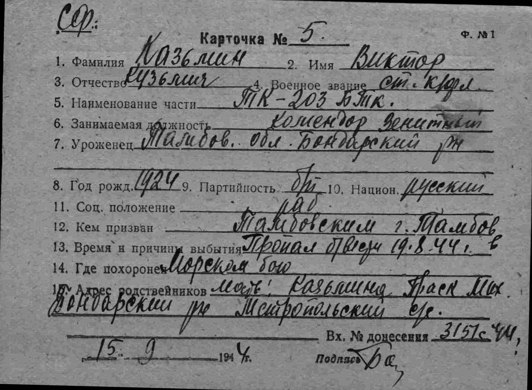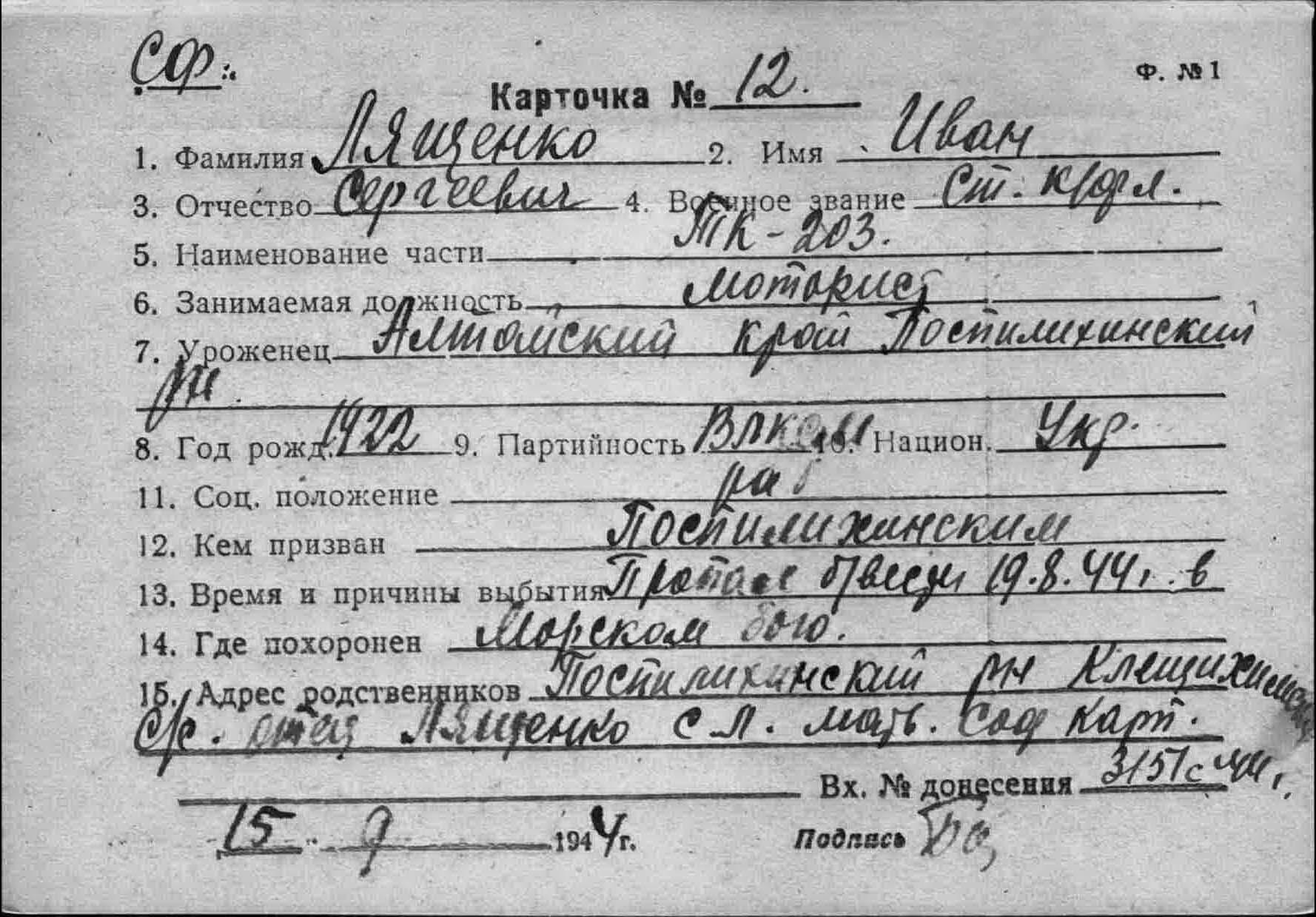 Название источника информации Трофейная и фильтрационная картотека, ф. Р3819