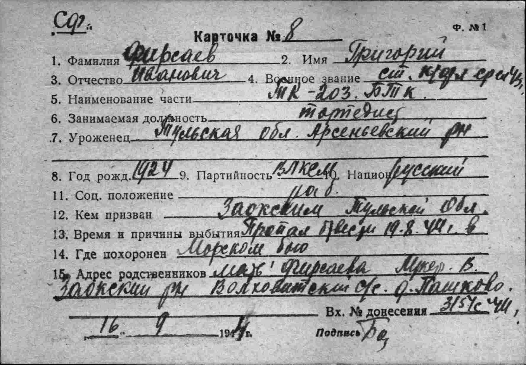 ФИРСАЕВ Григорий Иванович,ст.к-фл,торпедист 3 кл