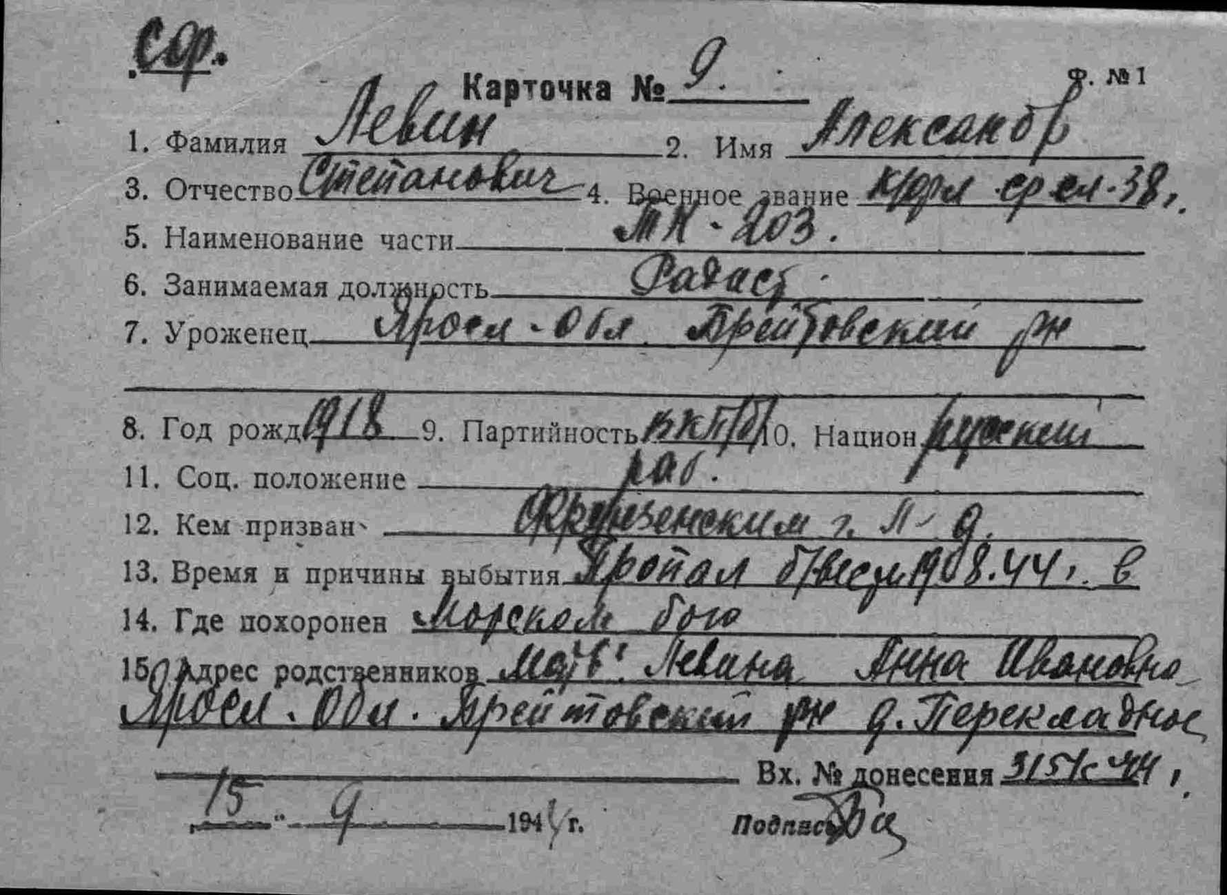 ЛЕВИН Александр Степанович,к-фл,радист 3 кл