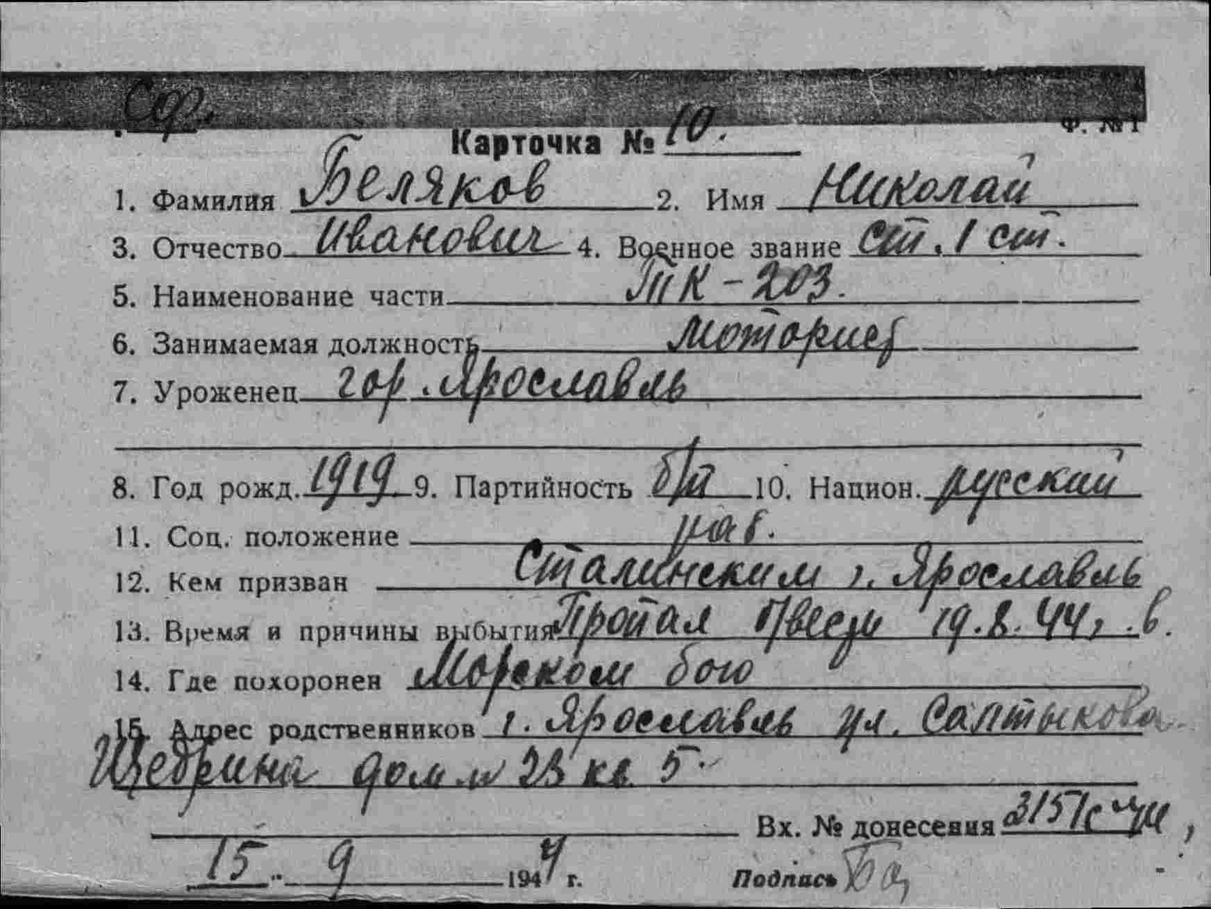 БЕЛЯКОВ Николай Иванович,старшина 1 ст,моторист 1 кл