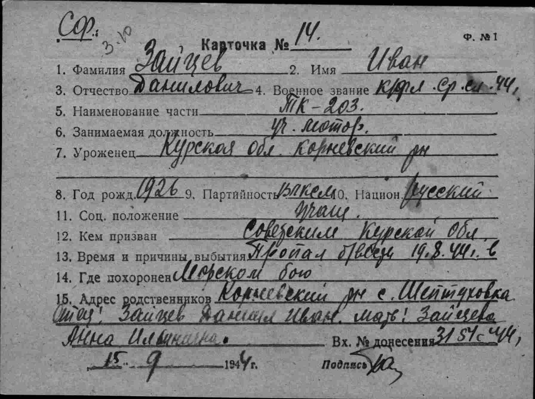 ЗАЙЦЕВ Иван Данилович,к-фл,уч.моторист 3 кл