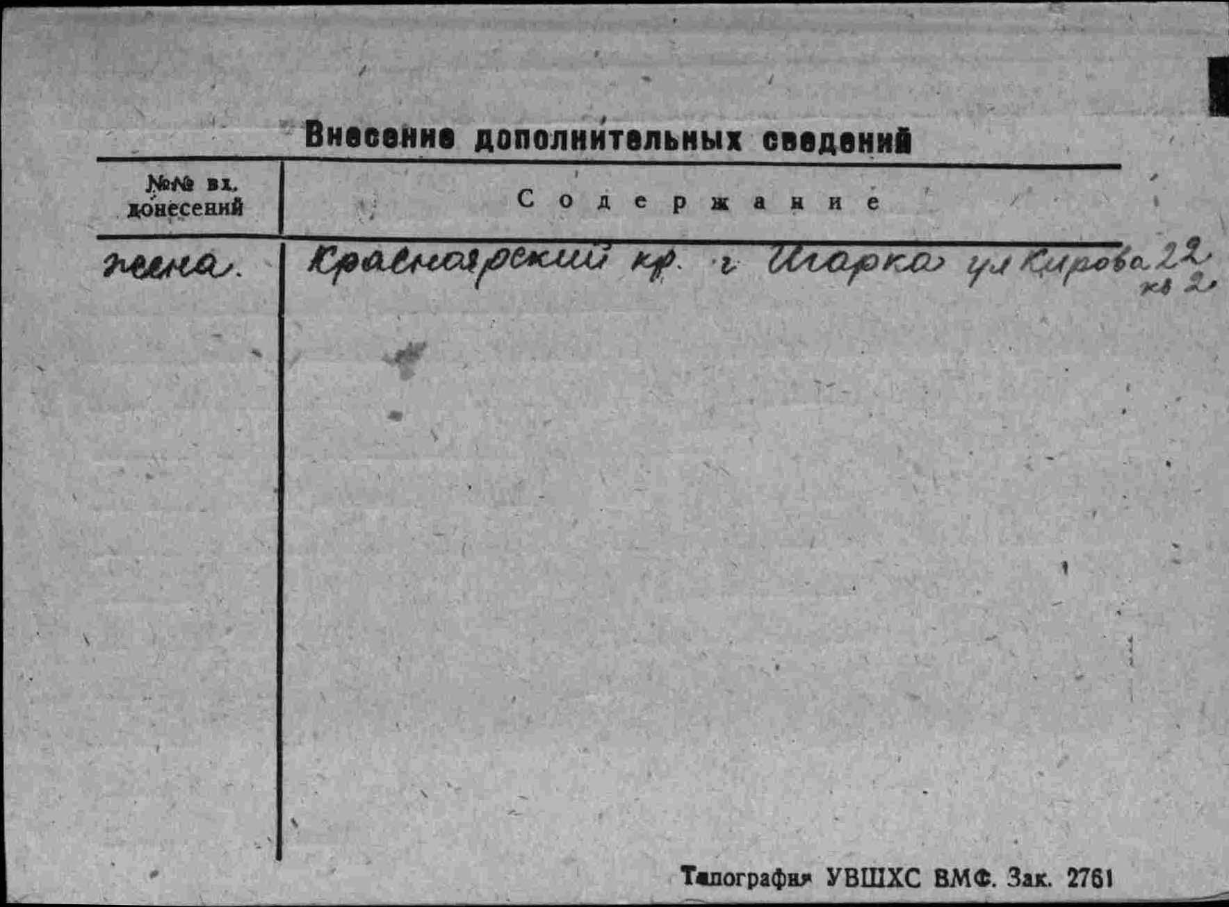 Место призыва Череповецкий РВК, Вологодская обл., Череповецкий р-н