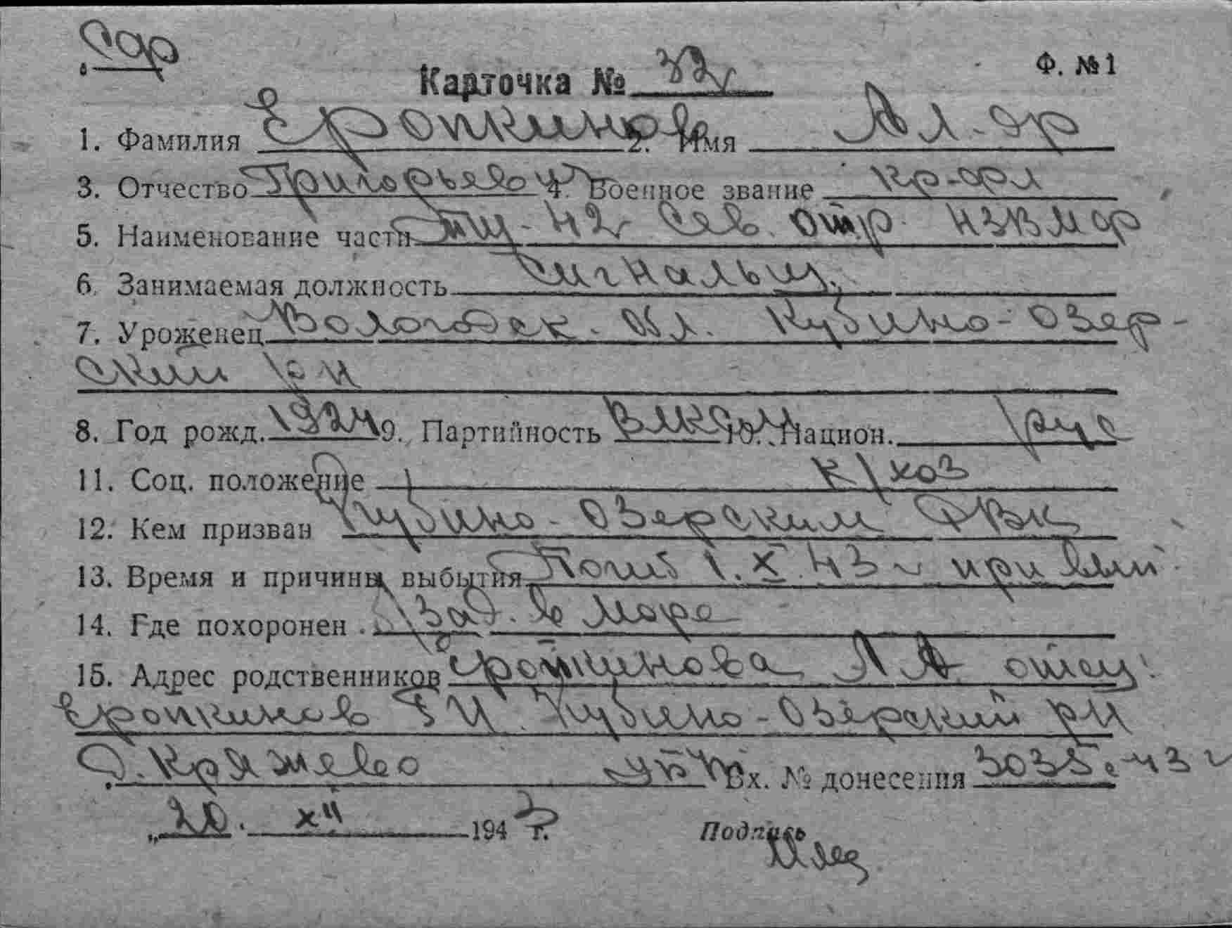 Название источника информации Картотека безвозвратных потерь