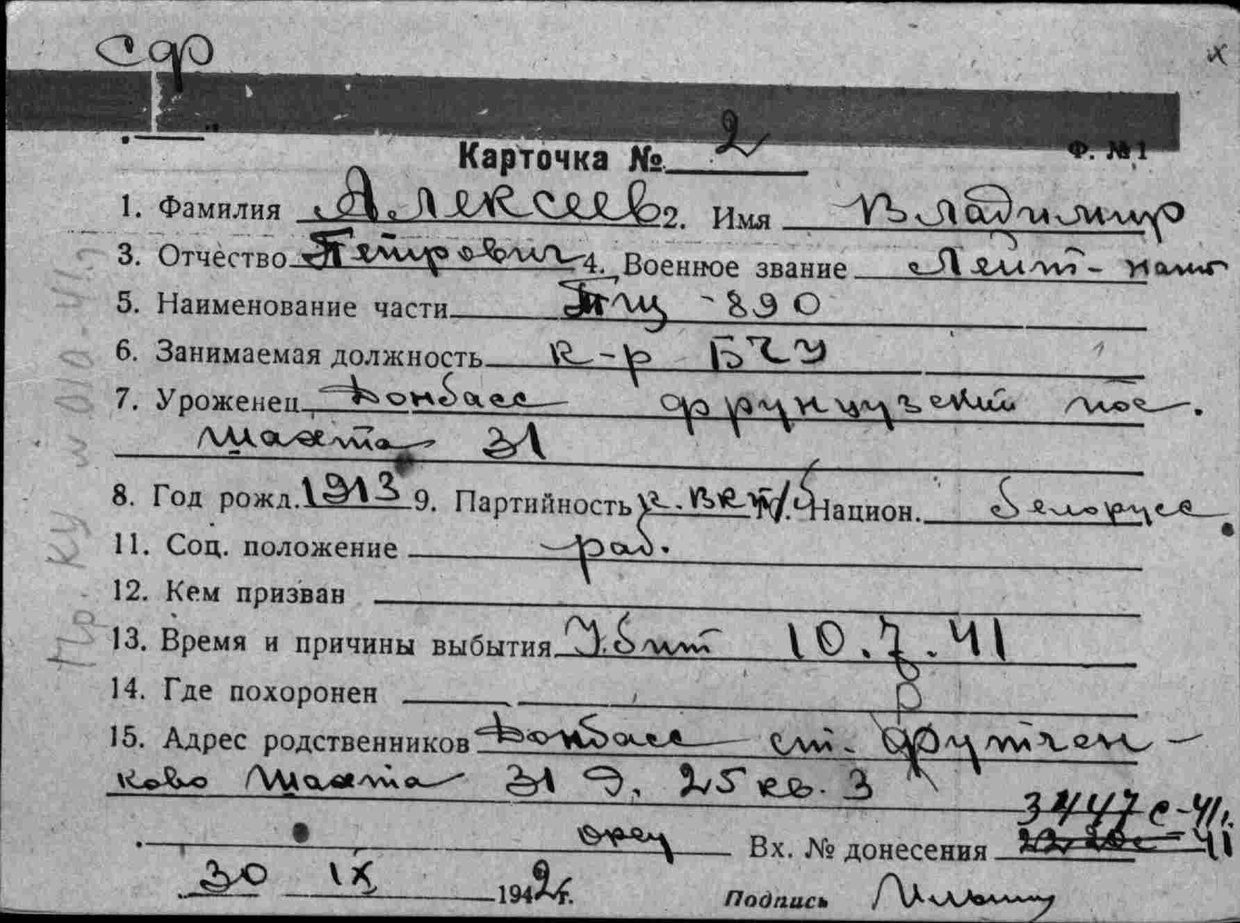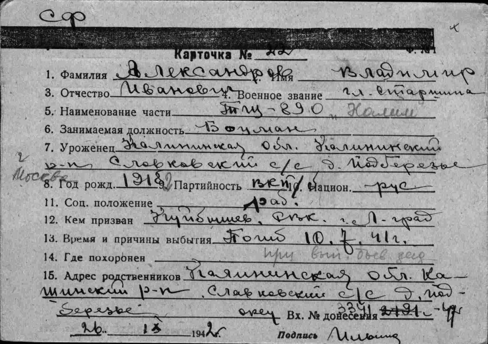 Дата и место призыва Сталинский РВК, Смоленская обл., г. Смоленск, Сталинский р-н