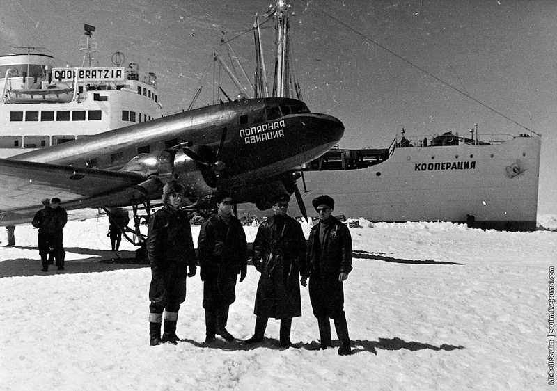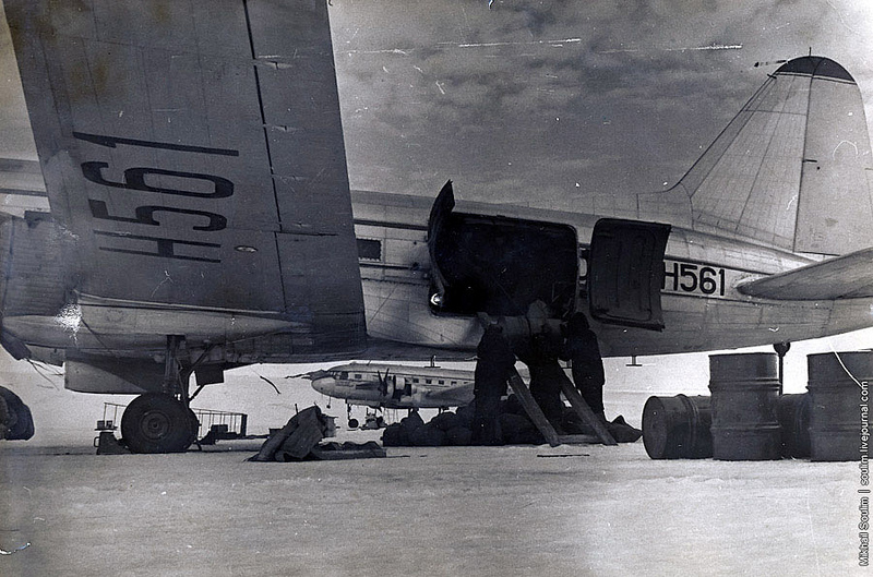 23 декабря 1957 г. на самолете ИЛ12 для определения рельефа местности был совершен разведывательный полет из Мирного в район Полюса относительной недоступности. На борту самолета, управляемого начальником авиаотряда В.М.Перовым и штурманом Б.С. Бродкиным, находились начальники Второй и Третьей КАЭ А.Ф. Трешников и Е.И. Толстиков, будущий начальник станции Советская В.К. Бабарыкин (это был второй полет в этот район, первый был совершен 3 марта 1956 г.). 1 октября 1958 г. на самолете ИЛ12 из Мирного был совершен беспосадочный перелет в глубь материка общей протяженностью около 3000 км. Маршрут самолета пролегал через станции Пионерская, Комсомольская, Восток и Советская. На последние две станции на парашюте были сброшены продовольствие и различные материалы (850 кг груза). 24—26 октября 1958 г. самолет ИЛ12 (командиры В.М. Перов, В.В. Афонин) совершил полет по маршруту Мирный—Советская—Южный полюс—Мак-Мердо. На борту находились Е.И.Толстиков, В.А. Бугаев, В.М. Макушонок. Это были первые советские полярники, пролетевшие над Южным полюсом с посещением американской базы МакМердо.