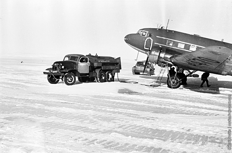 Предварительный выбор трассы на припае производился обычно с самолета, после чего намеченный район обследовался наземным транспортом. По пути движения измерялись толщины льда и снега, обследовались трещины и флажками намечалась трасса. Для нормальной переправы тракторов необходимая толщина льда равнялась 80 см. Весной 1957 г. все грузы были благополучно перевезены через трещину шириной 20 см, самовольная попытка одного из трактористов пересечь более широкую трещину окончилась аварией, трактор провалился.