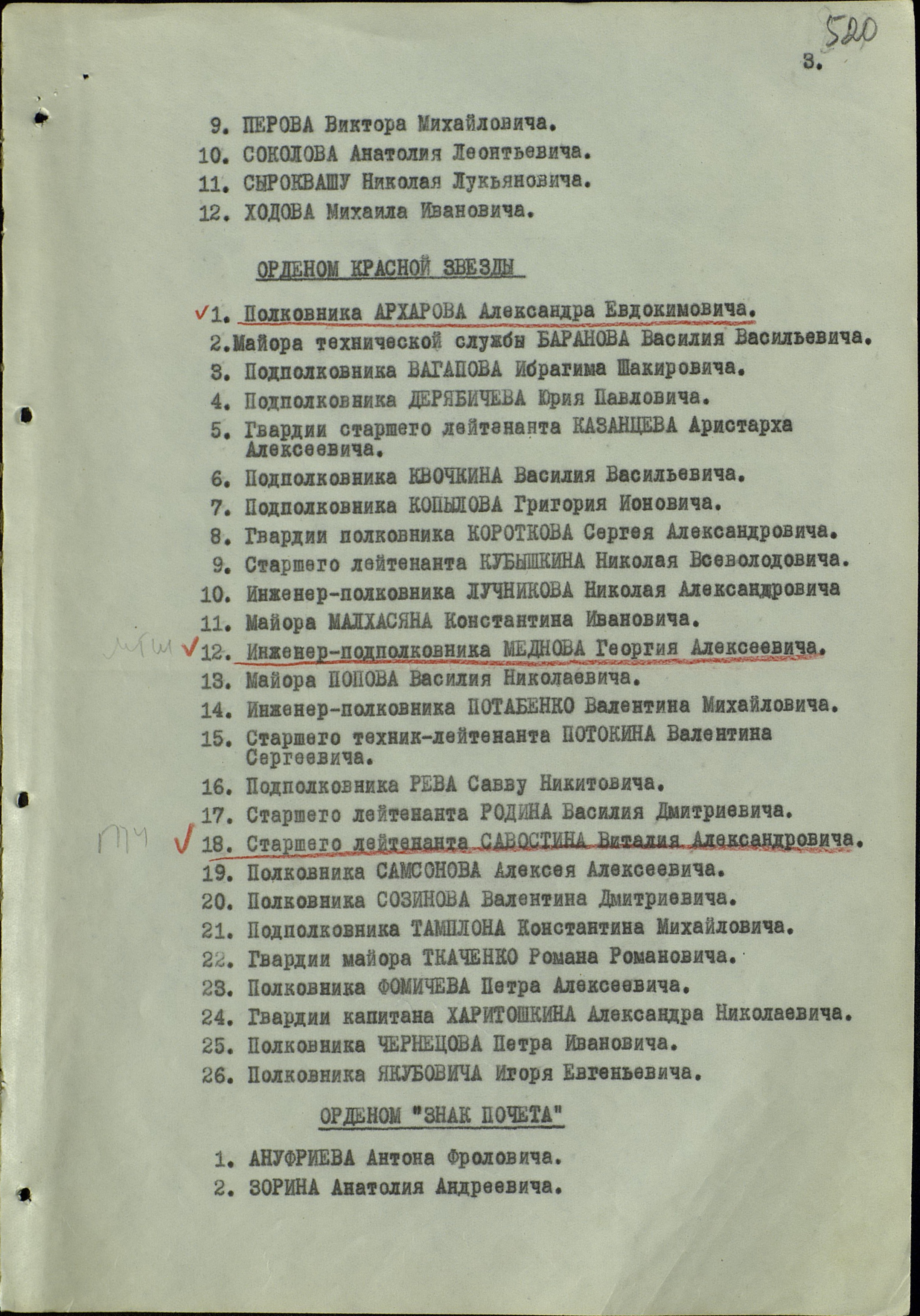 Прочитал в списке на награждение орденом Красной Звезды первым номером:полковник Архаров Александр Евдокимович. По моим раскопкам: Пр. 119с 30.5.55. Тоже уволить из ВМФ с 1.6.55 полковника Архарова Александра Евдокимовича – начальника а/п Тикси.