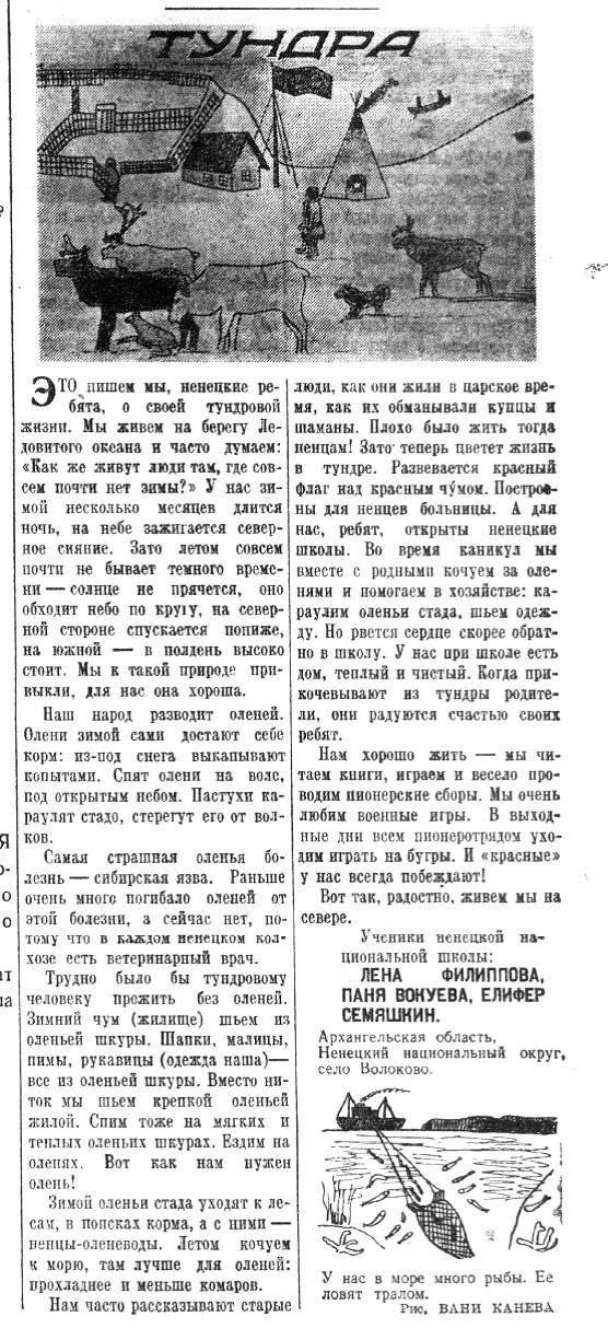 В стране самоедов//Пионерская правда 25 февраля 1928 №016