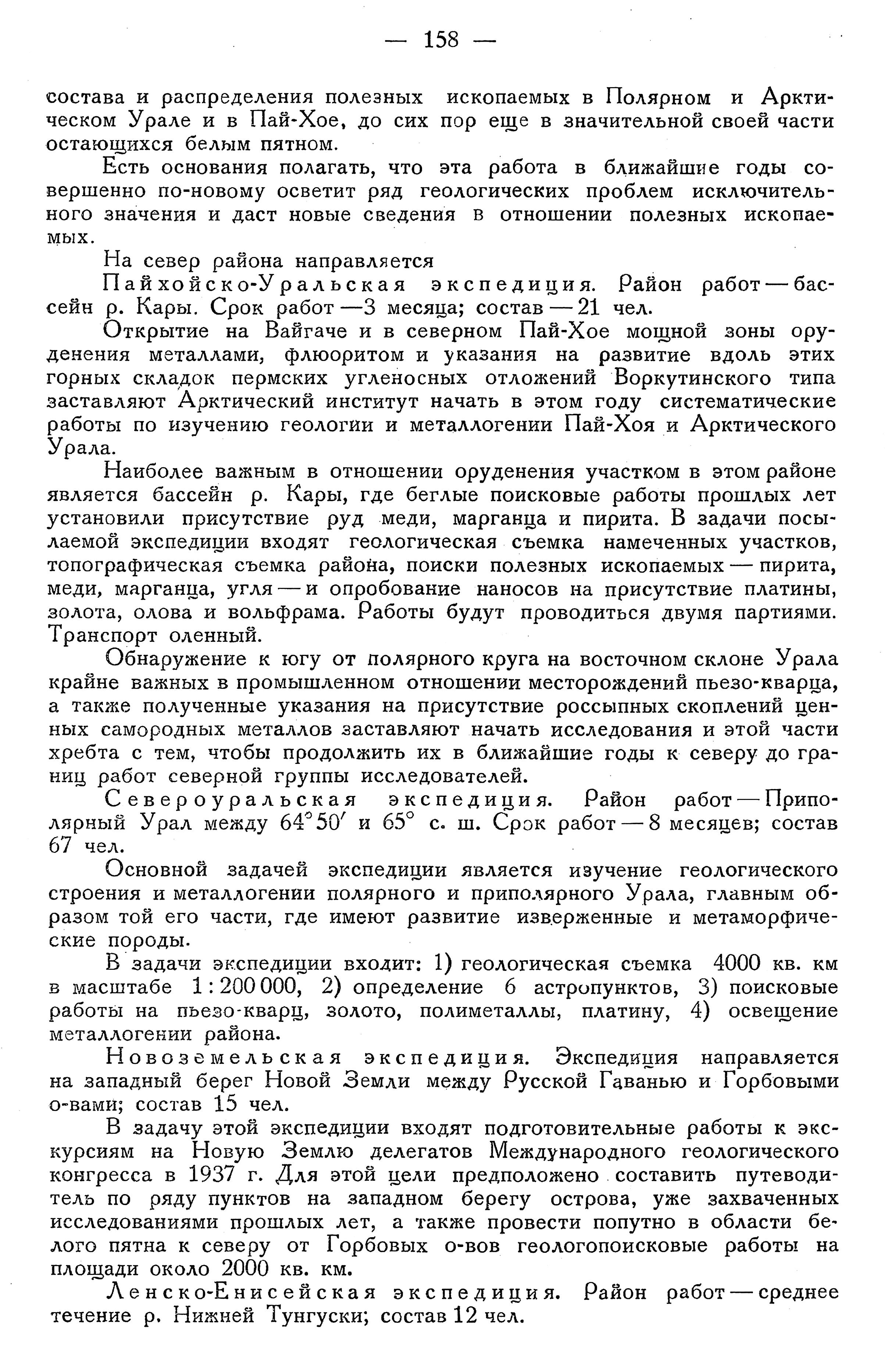 Можно не сомневаться, что в итоге успешного осуществления этого плана геологическая карта Советского сектора Арктики должна будет заметно уточниться, а карта полезных ископаемых пополнится многочисленными новыми точками. Удельный вес промышленно реальных точек безусловно сильно возрастет, принимая во внимание значительные потенциальные возможности, заключенные в недрах Арктики, в связи с успешно развивающейся социалистической индустриализацией Советского Севера.