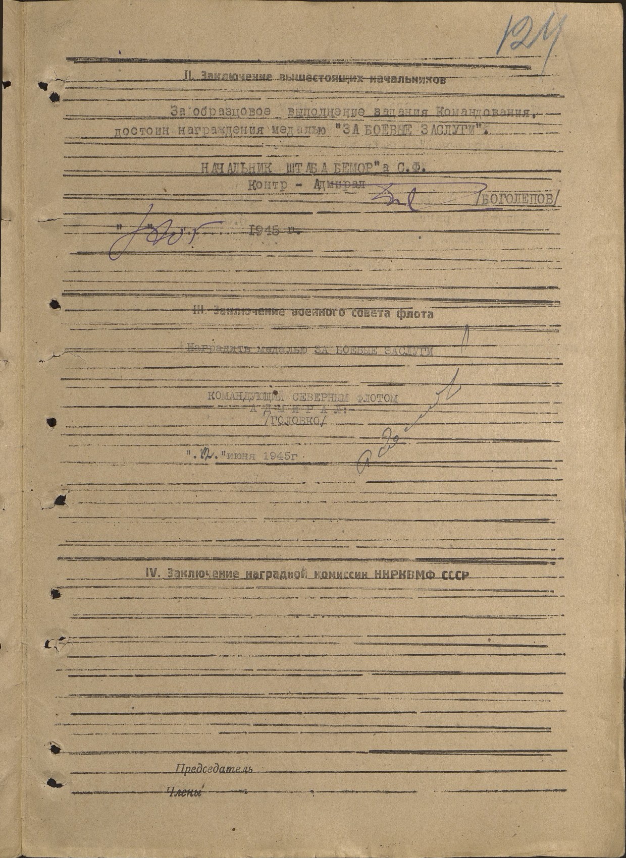 Приказ флота (флотилии) № 44 от 07.06.1945 СФ