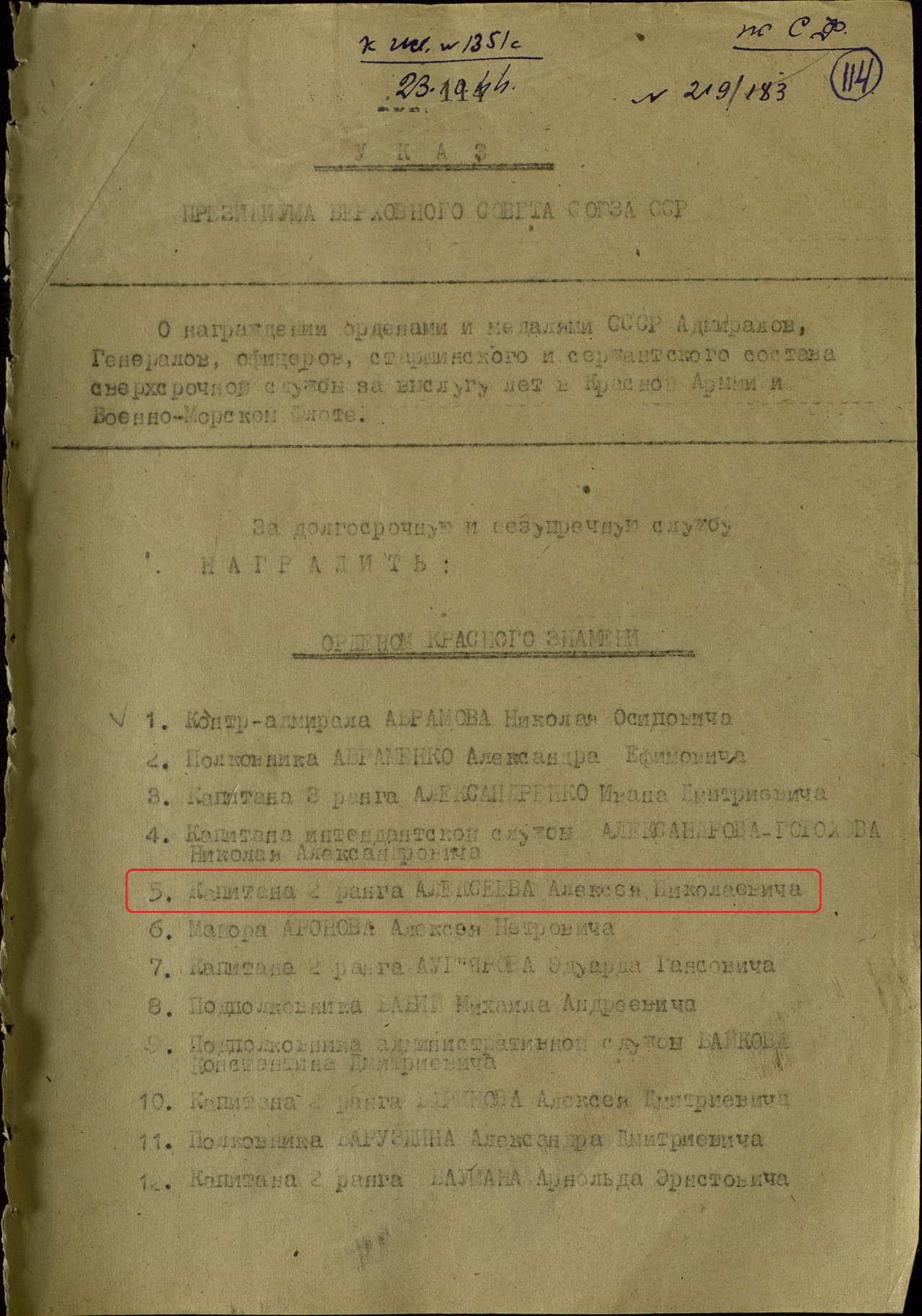 Приказ флота (флотилии) № 77 от: 02.12.1945 СФ
