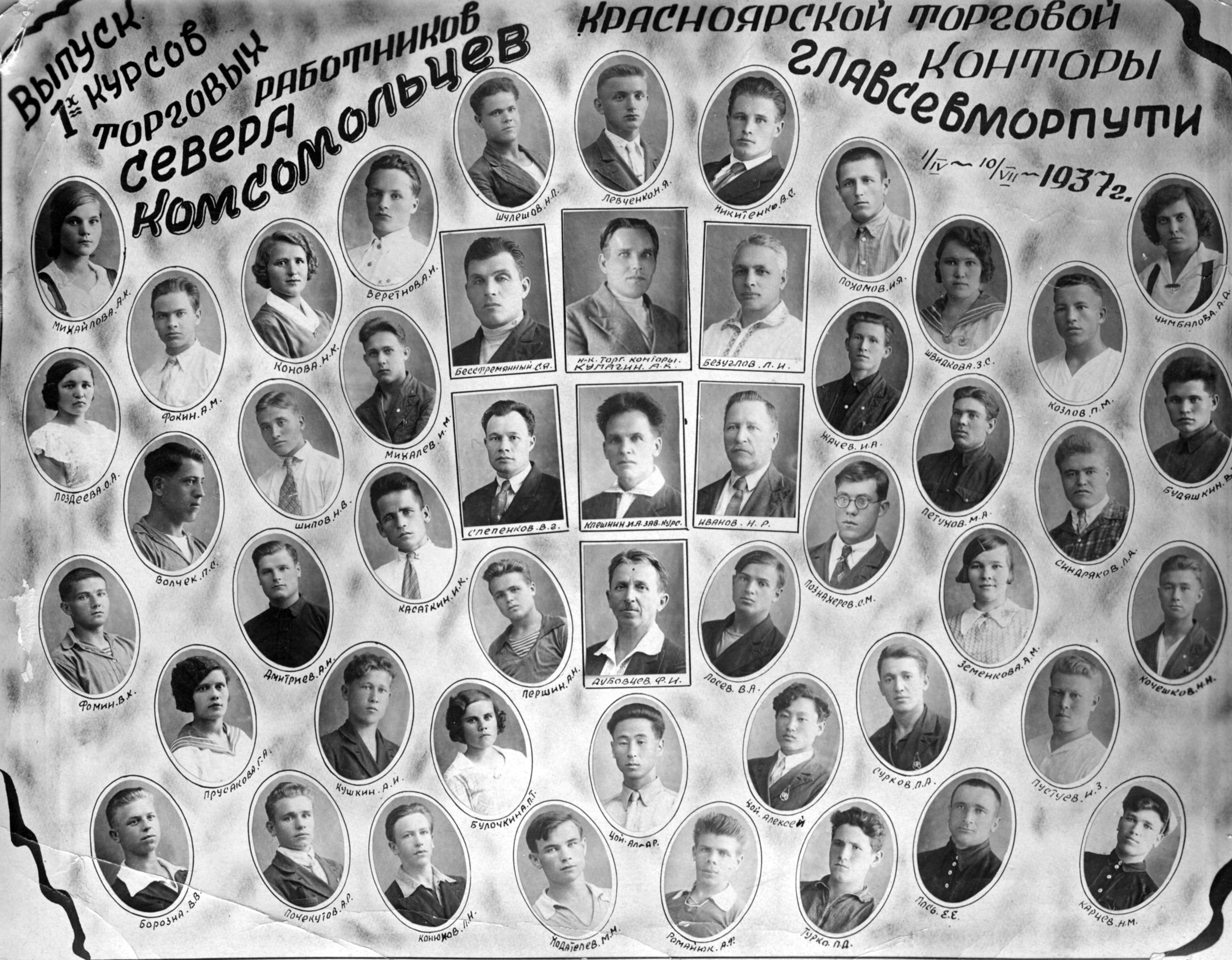Управляющими трестом в 1944– 46 гг. были Ширяев и П. С. Николаев, на долю которых выпал самый тяжелый организационный период, отличавшийся большой неразберихой. Главным геологом некоторое время работал Л. Громов, известный своими многолетними работами на о. Врангеля. С 1947 по начало 1950 г. трестом руководил А. Е. Голов, при котором работы достигли, пожалуй, наибольшего размаха. Указом Президиума Верховного Совета СССР от 06.04.1949 г. «О введении персональных званий и знаков различия для начальствующего состава Главсевморпути при Совете Министров СССР» [2] ему было присвоено персональное звание инженер-генерал-директора Северного морского пути (СМП), а вскоре он был переведен с повышением на должность начальника всего Горно-геологического управления ГУСМП. Управляющим трестом стал инженер-капитан СМП 2-го ранга В. И. Бондаренко.