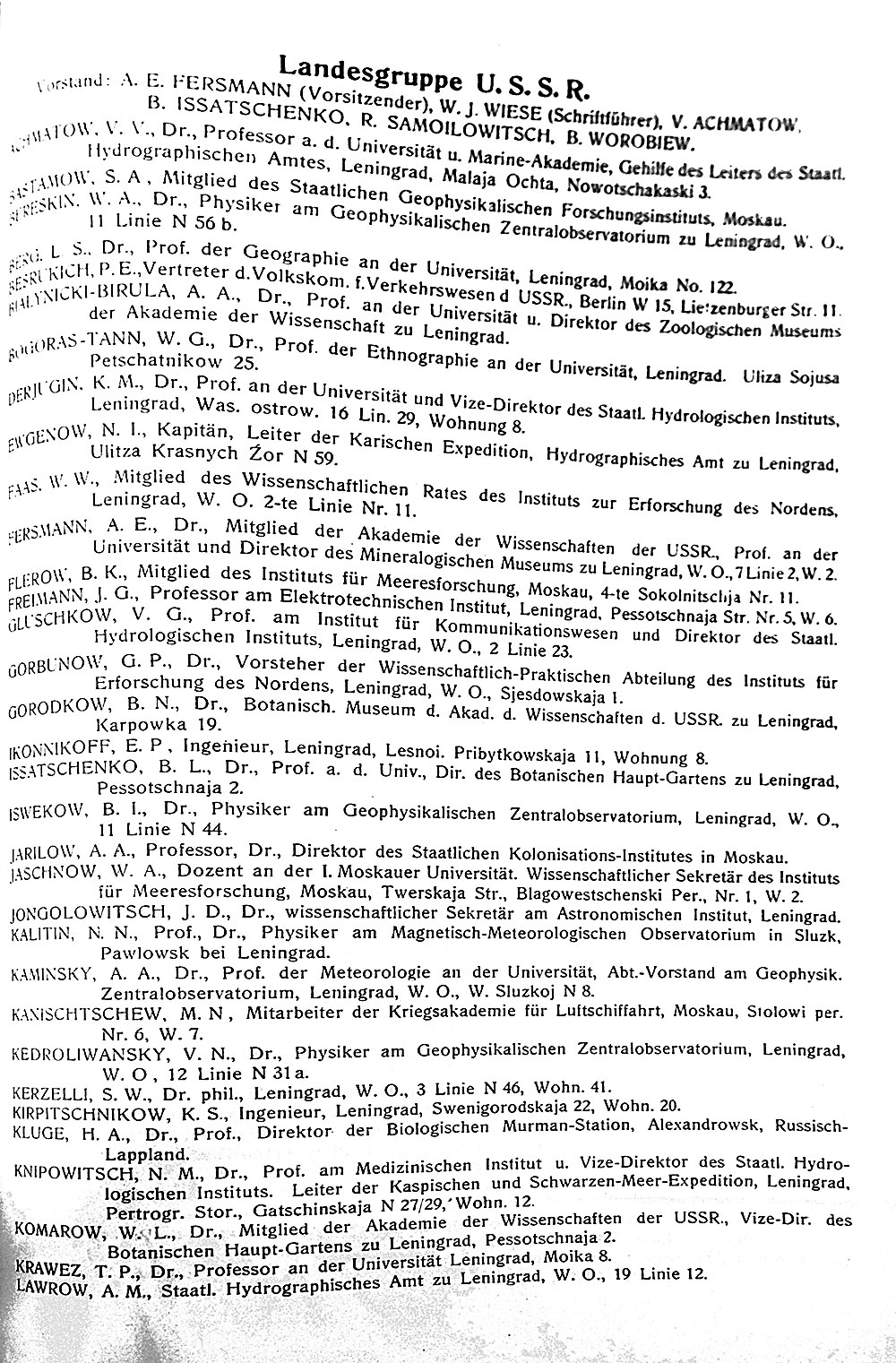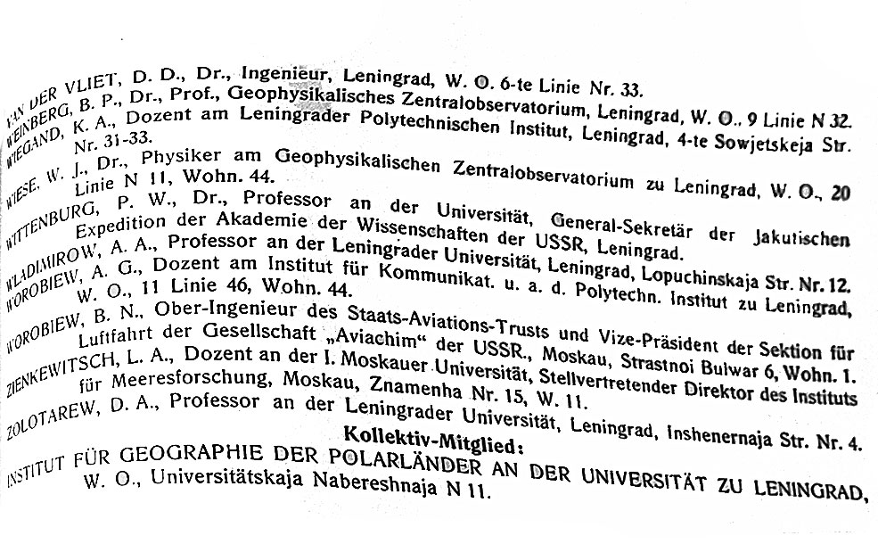 Правление : А. Е. Ферсман (председатель), В. Ю. Визе (секретарь), В. В. Ахматов, Б. Л. Исаченко, Р. Л. Самойлович, Б. Н. Воробьев
