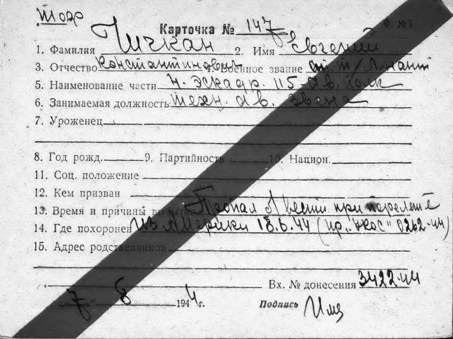 Дата выбытия 18.06.1944