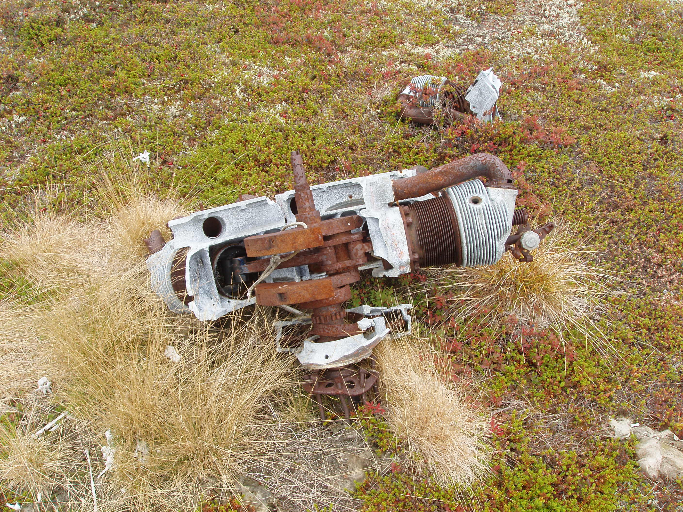 - Позже (80-е годы) двигатель был вывезен на сопку рядом с ТБ-3, там проводили буровые работы Тиманская ПСЭ. Где он лежит по настоящее время. (фото частей двигателя прилагаются).