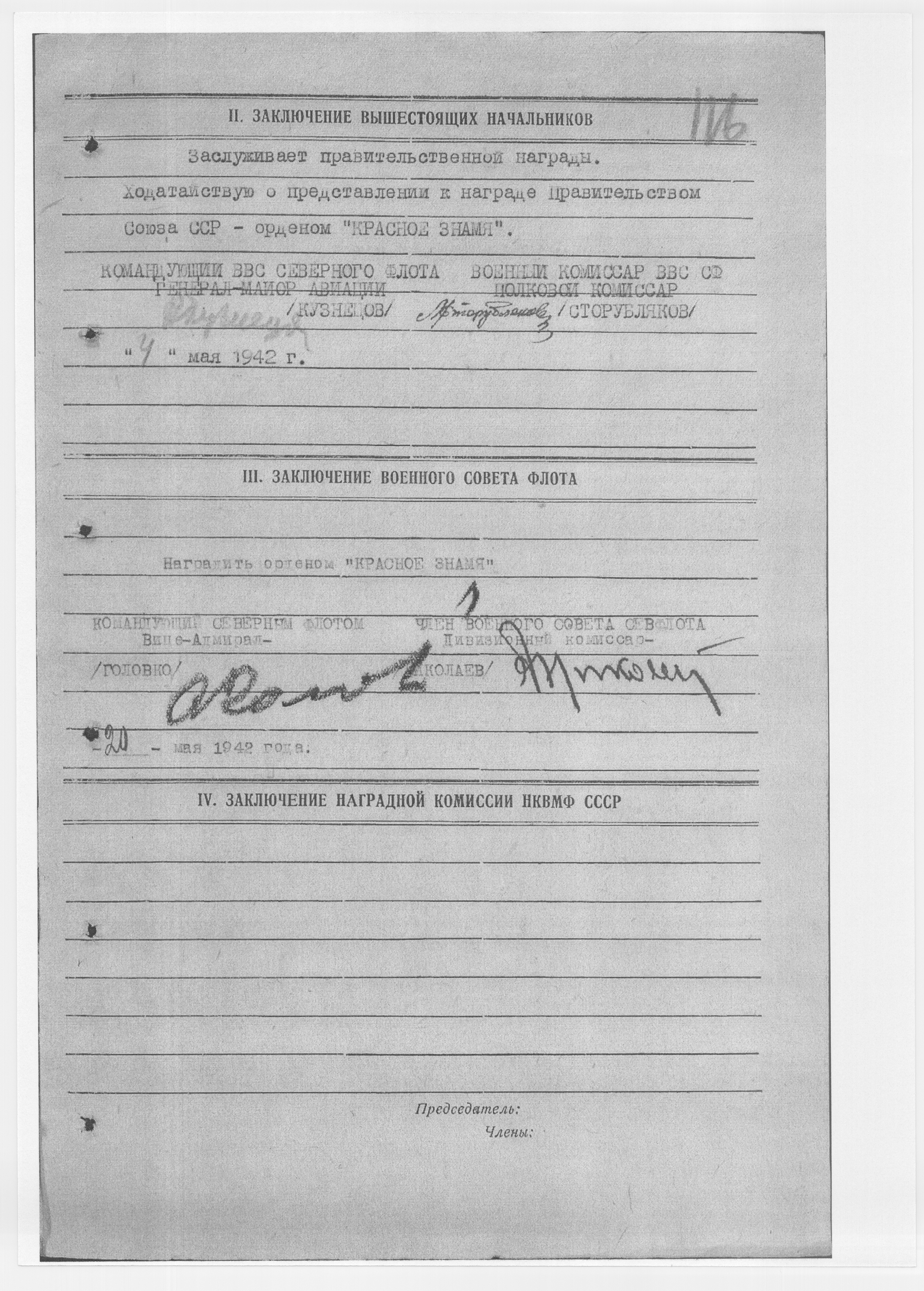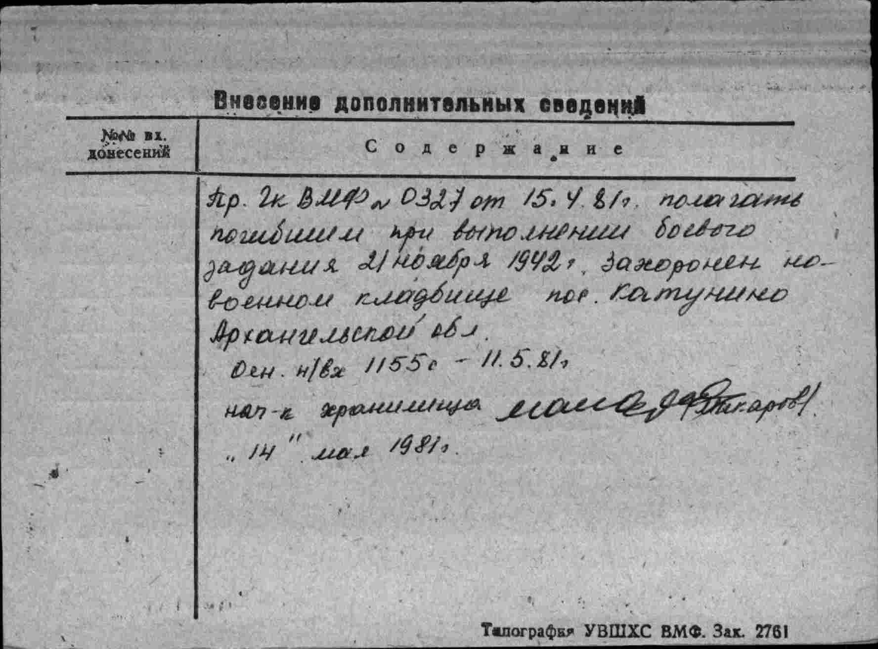 Сообщаю, сведения на летчиков ВВС Северного флота, погибших в 1942 г.