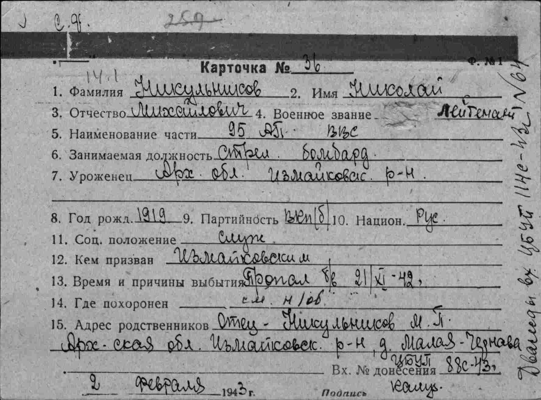 Название источника информации Картотека безвозвратных потерь