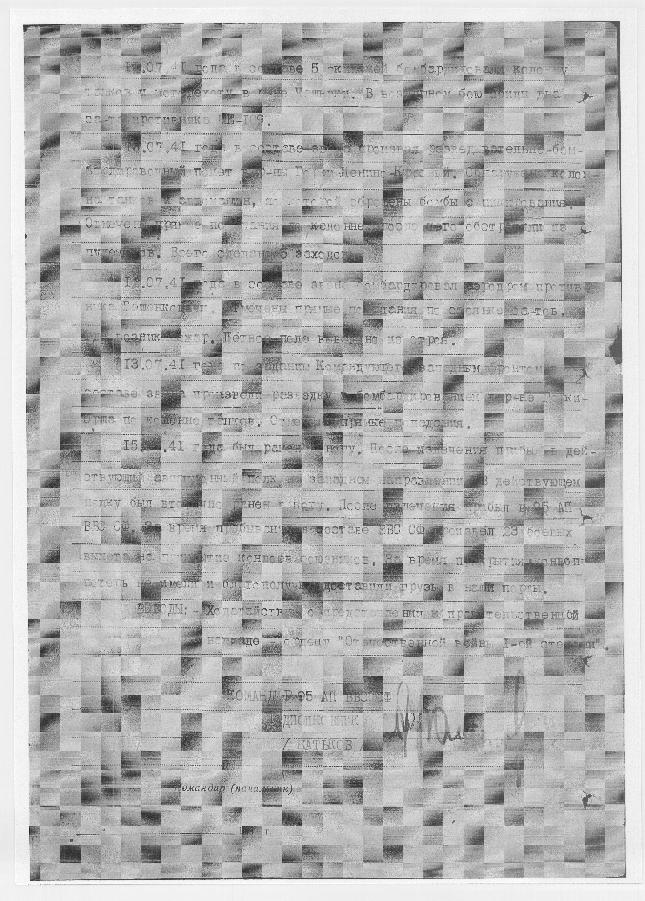 Последнее место службы СФ, ВВС 95 АВ