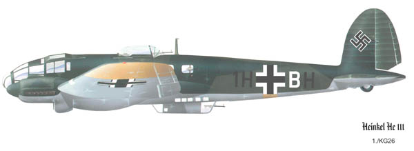 В небе Заполярья Не 111 воевали в составе II группы 26-й бомбардировочной эскадры "Львиная". Ее машины Не 111Н-5 были переброшены на аэродром Банак в начале августа 1941 г. Сначала это был только 2-й отряд, но затем на мурманское направление были привлечены и машины других отрядов этой группы. Параллельно самолеты II группы участвовали и в операциях против Англии. Эта группа потеряла в боях на советско-германском фронте летом и осенью 1941 г. 12 машин. Кроме того, семь самолетов вышли из строя по небоевым причинам. III группа 26-й эскадры, находившаяся в Норвегии в начале июня, была переброшена на центральный участок Восточного фронта для участия в налетах на Москву.